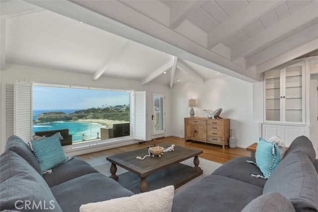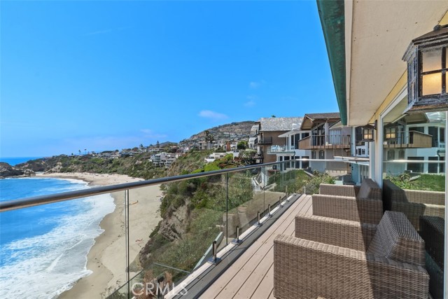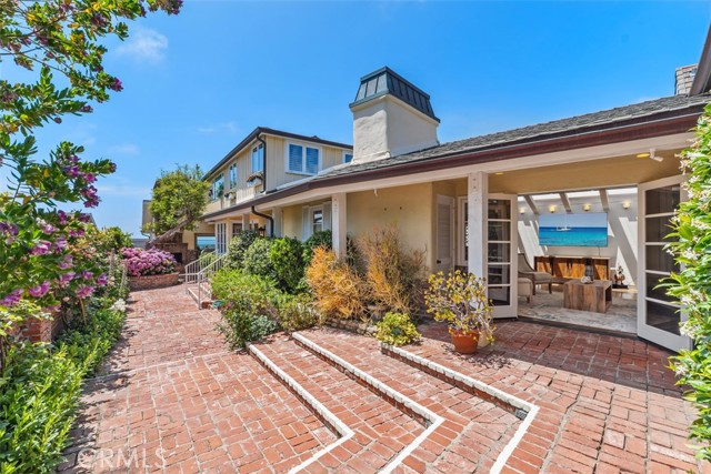 Enjoy impressive, unobstructed panoramic views of the ocean and sandy beach of Three Arch Bay, with iconic Whale Rock perfectly framed beyond. This stunning coastal furnished rental retreat offers the ultimate in oceanfront living. A beautiful garden greets you as you enter into the courtyard where a charming Dutch door opens into a bright foyer. The spacious living room features a cozy fireplace, and an oversized picture window showcasing the breathtaking views of Three Arch Bay beach. French doors open onto a private oceanfront deck ideal for relaxing with the ocean breeze or enjoying unforgettable sunsets. The dining area features a beautiful chandelier, creating an elegant space for entertaining. The kitchen is warm and inviting, with French windows and doors, abundant counter space, six-burner Viking double oven with buffet area, Viking warming drawer, Sub-Zero refrigerator, Viking trash compactor, Bosch dishwasher, wraparound sink, generous cabinetry, and a walk-in pantry. A spacious den/TV room with vaulted ceilings, fireplace, garden skylight, and French doors opens to the peaceful interior courtyard. Upstairs, the luxurious primary suite features a king bed, large viewing window with sweeping ocean and beach views, walk-in closet, and en-suite bath with soaking tub, step-in shower, privacy toilet, and dual vanities. Situated adjacent to the bedrooms is built-in desk area with shelving and file drawers provides a perfect home office space. A second upstairs bedroom includes two twin beds, walk-in closet, and en-suite bath with step-in shower. The lower level offers a versatile space serving as 3rd bedroom or den, complete with queen bed, sitting area with 2 sofas, one with fold-out queen bed, mini kitchenette with fridge and sink, and charming en-suite bath with clawfoot tub and custom wood sink. Double doors open to a brick patio for alfresco dining with ocean views or continue down to the lower deck for sunbathing and relaxation. Perfect for seasonal stays or extended retreats, this home provides exclusive access to Three Arch Bay s secluded beach with resident s only access, tennis courts, clubhouse, and park. Experience the coastal Lifestyle at its finest with spectacular oceanfront views every day. Available SUMMER - call now for available dates.Interested in this Listing?