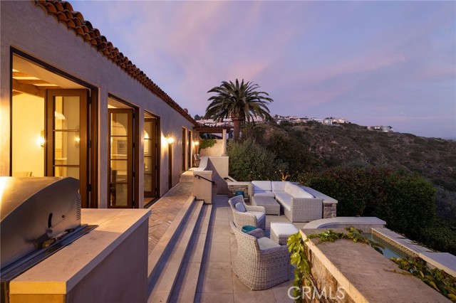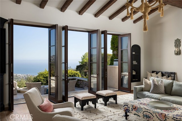 Commanding a prime corner lot in the coveted enclave of Mystic Hills, this architectural jewel offers stunning ocean and city light vistas from its elevated position in Laguna Beach. Designed by John O Neill, the residence exudes timeless European charm. Reimagined and expanded between 2022 and 2023, it showcases exquisite craftsmanship and thoughtful detail throughout, merging Italian elegance with subtle Spanish influences and contemporary finishes. Approximately 4,545 SF of interiors accommodate four bedrooms, four and one-half bathrooms, executive office, temperature-controlled wine cellar accommodating appx. 200 bottles, dedicated laundry room, and versatile bonus room. Expansive glass French doors invite natural light and provide seamless access to ocean-facing terraces and peaceful patios. A chef's delight, the kitchen provides professional-grade appliances, rich stone countertops, a cozy fireplace, and a butler s pantry creating a warm, inviting hub for everyday living and entertaining. The luxurious primary suite offers direct terrace access and sweeping views, along with a spacious walk-in closet, dual stone-topped sinks, a soaking tub, separate walk-in shower, and a dedicated vanity area offering both comfort and retreat. Winding pathways lead through fragrant rose gardens, tranquil fountains, and manicured lawns, culminating in an upper-level terrace with a spa and a circular dining tower that captures the sea breeze year-round. Offering plenty of space to entertain, the backyard hosts multiple seating areas designed for large scale gatherings. A finished 3-car garage, solar, and home automation complete the residence. Every inch of this home reflects a harmonious blend of indoor-outdoor living and captures the essence of the California Riviera lifestyle in one of Laguna Beach s most sought-after neighborhoods. AVAILABLE FOR LONG AND SHORT TERM TENANCY.Interested in this Listing?