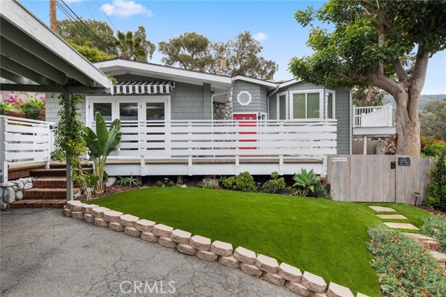 Welcome to 1310 Bluebird Canyon, a whimsical coastal cottage recently upgraded and awaiting your stay in the heart of Bluebird Canyon. The perfect setting for hosting memorable gatherings and celebrations, this luxurious residence enriches indoor/outdoor living with both ocean and canyon views. Spend time in the tranquil front yard with manicured landscape and lighting, with multiple decks to catch the afternoon sun, and a natural canopy of the mature trees. French doors open from the primary bedroom onto a viewing balcony allowing the ocean breeze to enter through the room. Retreat to the secondary bedroom which is surrounded by nature and also offers its own private outdoor space. Enjoy preparing meals with family and friends in the fully appointed kitchen, recently updated with Silestone countertops and new french oak flooring. Sit at the counter and watch the sunset in the large family room equipped with a delightful fireplace to use on those chilly evenings. In addition, new skylights make this cottage extremely light and bright. Bountiful storage and a full washer and dryer reside on the main level as well. This house offers tandem parking for 3 cars for those guests that want to visit longer than expected. Laguna s world-renowned beaches and coves are just a few blocks, recreation abounds, and the galleries, stores and restaurants of Main Beach s popular Village are moments from home.Interested in this Listing?