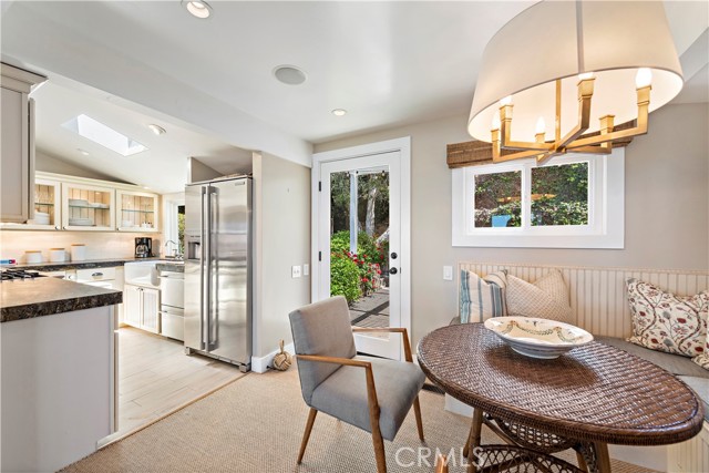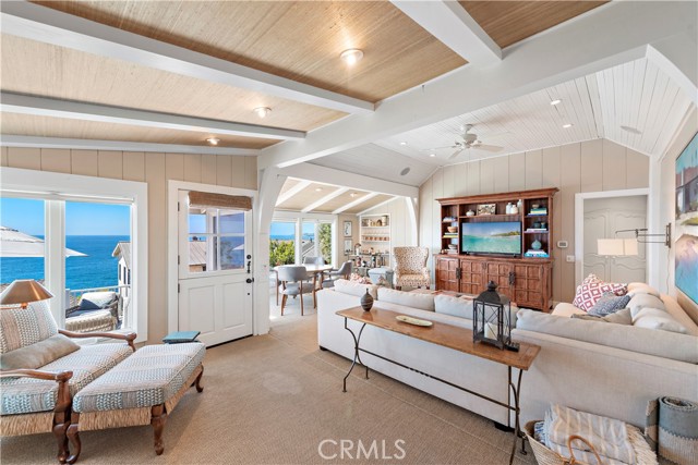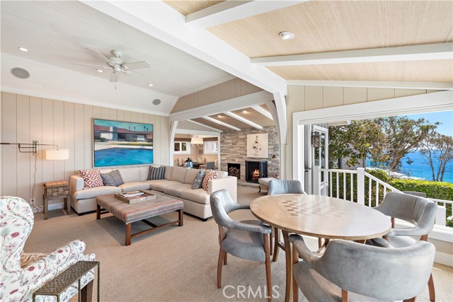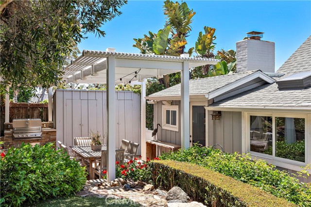 Welcome to this charming cottage in the Rockledge private community at Victoria Beach - it's the ultimate Laguna Beach experience! This bright and cheery home has been meticulously updated with all the modern comforts you could ask for, including dual-paned windows, air conditioning, and stainless steel appliances. From the front deck, you can soak up the sun and take in the ocean views while listening to the soothing sound of the surf. Inside, the spacious main living area with its open beam ceiling and wood-burning fireplace is the perfect spot to kick back and relax. The main bedroom is a cozy haven with its fireplace, ocean views, and an en-suite bathroom that conveniently connects to the laundry room. The backyard is your own private oasis, surrounded by lush landscaping and mature trees. It's the ideal place to enjoy al fresco dining under the pergola with accent lighting and a built-in BBQ. Plus, it's just a short walk to the beach and close to the Laguna Beach free trolley stop on PCH, so getting around is a breeze. Don't miss out on the chance to make this cottage your own and experience the laid-back Laguna Beach lifestyle. This home has everything you need for coastal living at its best. Come and discover the charm of Laguna Beach in this delightful cottage at Rockledge.