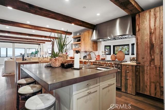 Rarely does a home of this quality become offered for rent. Perched above the steps to the famed Woods Cove beach, in a town with roots as an artist colony, sits an exceptional home that could be considered a work of art in itself. Enter the main living space and the natural, earthy elements of this recently reimagined residence welcome you with a sense of relaxation and calm. Take in the stunning views across the Pacific from almost every space in this home, from the comfortable living room into the fully outfitted top of the line kitchen and up to the primary retreat, which stands alone on the top floor. Stay to unwind, or entertain with ease as you take advantage of the open concept layout flow from the great room to the kitchen/dining space and through the sliding glass paneled doors, which open to the magical backyard setting featuring a built in BBQ, extra-large custom dining table, relaxing spa and a tremendous fire feature that will warm you on the coolest seaside evenings. Beyond the sense of wonder and incredible detail, this home features all the finest amenities including security, central air, indoor and outdoor surround sound, a reverse osmosis drinking water system, wine closet, steam shower, infrared sauna and an in-home Tonal gym set up. The street level of this home features a bedroom and bathroom with its own separate entry to the street and direct access to the garage. Sitting directly across the street from the steps down to Woods Cove beach, a short distance to Laguna Beach s fine dining and shopping, parks and hiking trails, this home has everything and more for the coastal vacation of your dreams, or an extended stay to cleanse the soul.Interested in this Listing?