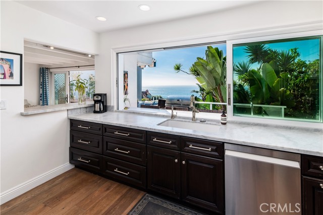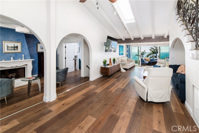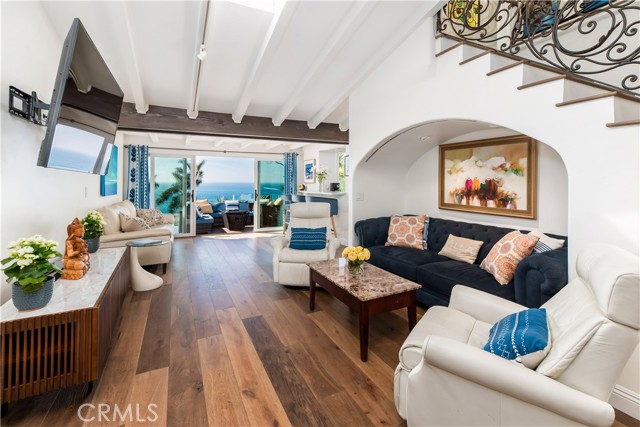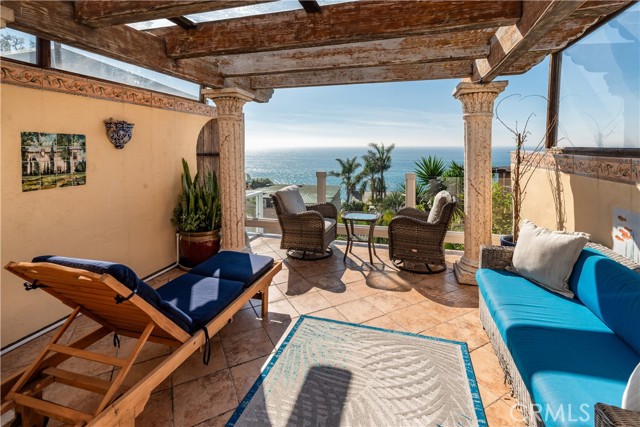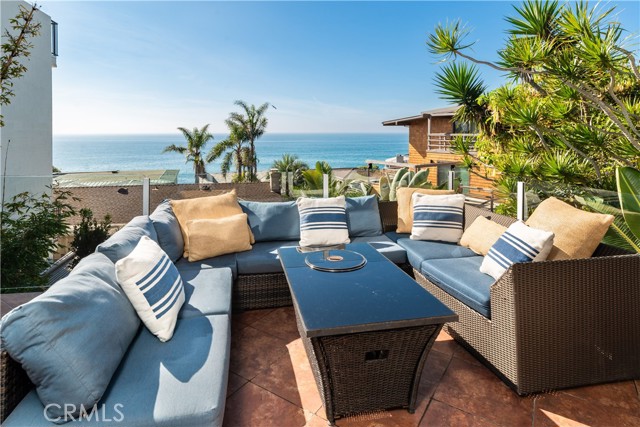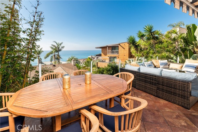 Unforgettable Ocean and Catalina Views Greet you as you arrive for a Getaway in this Artistic retreat. Fully FURNISHED WEEKLY or MONTHLY Rental featuring 4 bedrooms and 4 Baths with Ocean views from most rooms and is tastefully decorated with original art throughout the property. Arrive on the main floor and enter into the bright and airy living areas featuring hardwood flooring-fireplace-generous chief's kitchen with marble counters-stainless appliances-pass thru window to outside deck, perfect for entertaining quests and two main floor bedrooms. Once outside enjoy private jacuzzi spa-BBQ-large teak dining table and comfortable outdoor patio furniture, where you can relax and enjoy the stunning ocean views. The primary suite is located on upper level with its own private patio-private bath and king bed with more amazing ocean views. The lower-level guest suite features its own living area-queen bed -bath-laundry area and small compact kitchenette with steps down to lower outside patio. There is a private art gallery in front of the home that is currently closed, tenants have access to the large indoor dining room and office. Located on the Ocean side of Pacific coast highway and just one block from Amazing Beaches and minutes to downtown Laguna with fine shops and restaurants. Enjoy the ultimate opportunity to experience the Laguna Beach Lifestyle.