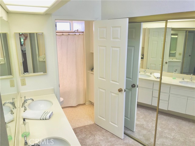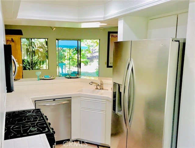 Located in highly sought-after Laguna Beach in The Terraces, with 2 en-suite primary bedrooms PLUS 2 1-car garages for a total of 3 parking spaces, and it's situated at the end of the cul-de-sac. Refrigerator & private laundry, washer/dryer included! High ceilings, skylights, recessed lighting, back patio and spacious kitchen plus a fireplace. Unit has been refreshed & updated inside & out with paint, new flooring, updated primary bathroom, kitchen sink & more. All this, plus the Laguna Beach school system! This community has 2 pools, bbq area and more. Conveniently located near the 73, hiking trails & more.