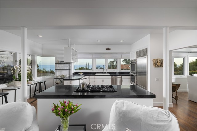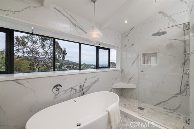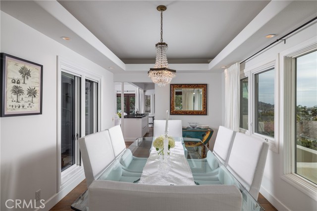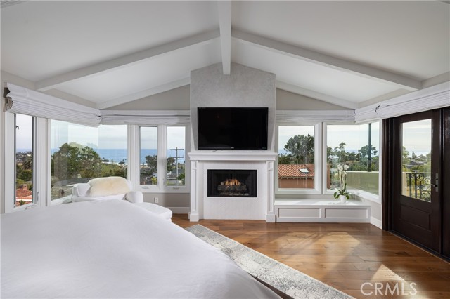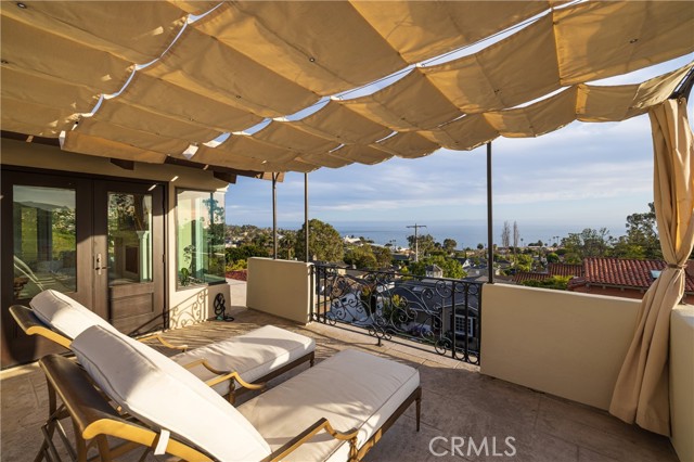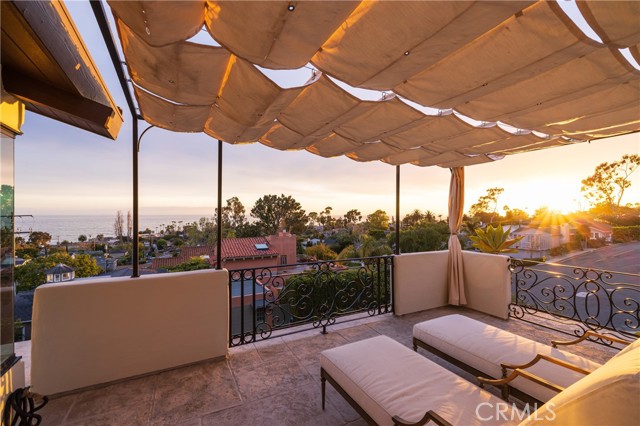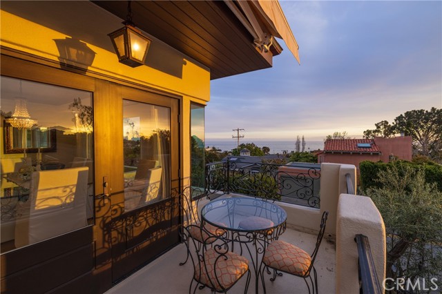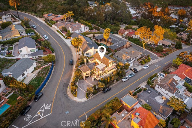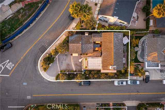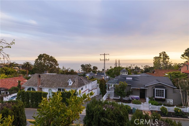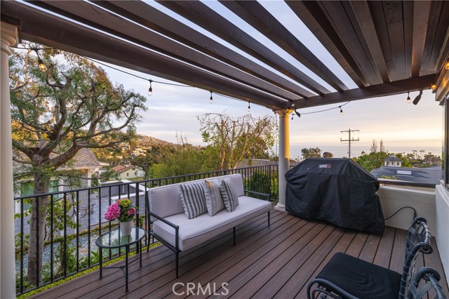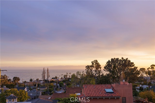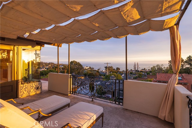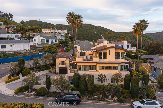 Located in the very desirable and sought-after Tree Streets in North Laguna Beach, this corner lot residence is embellished with approximately 103 feet of view frontage, offering picture-perfect white water/ocean, city, evening-light, Catalina Island, and sunset views from nearly every room. The elevated homesite is laid out over three levels and offers four bedrooms, four full baths, a library/office, and a large bonus room currently used as an exercise area. The main living level opens onto decks offering breathtaking vistas, as well as upgraded picture windows and an array of French doors, creating a seamless blend of indoor and outdoor living. Elegantly designed outdoor living spaces offer a perfect setting for gatherings, seamlessly extending onto large decks with stunning ocean views. The main level boasts a living room, kitchen, dining room, bedroom, and bath each designed with elegance and functionality in mind. Upstairs, the luxurious primary suite features a fireplace, private balcony, walk-in closet, and upgraded en suite bath with a soaking tub, separate walk-in shower with multiple shower heads, quartz counters, marble flooring, and vanity area. Fine craftsmanship is evident throughout, with rich beamed ceilings, elegant wood-plank flooring, and sophisticated recessed lighting. The library/office is located on a split level off of the main living area, as well as a very private bedroom and bath which offers a sweetheart balcony. The fourth bedroom and bath, as well as laundry, large gym, and garage, are on the lower level. Ample parking is provided by a lengthy driveway and one attached garage. The driveway will accommodate up to three vehicles. Ideally located minutes from the Dartmoor trailhead a local favorite for hiking and biking enthusiasts the home is also conveniently close to Crescent Bay, Main Beach, and Heisler Park, as well as within walking distance to Laguna's downtown shops and restaurants. This turn-key residence is a testament to luxury coastal living, promising an unmatched lifestyle in one of Laguna Beach's most coveted locations.