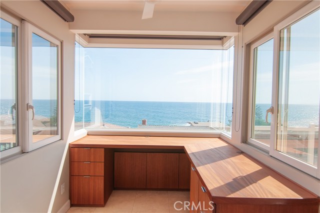 Welcome to 2855 Marion Way, located on a quiet cul-de-sac in the desirable Victoria Beach neighborhood. This home offers proximity to the sandy shores, just a few short blocks away, allowing you to experience coastal living at its finest. Rebuilt in 2005, the property seamlessly combines modern elegance with a relaxed coastal vibe. Central to the home is a bright and open great room, integrating the kitchen and living areas into a unified, inviting space. High ceilings, a fireplace and ample natural light enhance the area, which opens onto a deck with stunning ocean views. Adjacent to the living area is a functional office nook, providing a tranquil workspace with an ocean view. The kitchen is equipped with a stylish island featuring a waterfall edge granite countertop and premium appliances. The primary suite is on the main living level (upstairs) and includes a spacious walk-in closet, additional custom built-ins and a private deck. The primary bath features a deep jacuzzi tub, marble countertops, and a glass shower, creating a luxurious spa-like experience. The third bedroom has been converted into a media room, ideal for film enthusiasts, but can easily be repurposed as bedroom. Additional features include mini split heating and air conditioning units, automatic awnings, and two water fountains. An outdoor shower is available for rinsing off after beach visits. This property is offered unfurnished, allowing you the opportunity to personalize it to your style and create your own coastal retreat.Interested in this Listing?