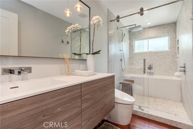 Gorgeous mid-century modern home resting on a large corner lot in desirable Top of the World close to schools, parks, and hiking trails. A newly remodeled single story residence surrounded in mature privacy landscaping and wood fencing. Interior design includes beautiful hardwood floors, crown molding, open living room, kitchen, and dining room all flowing through multiple window and door systems to a stone paved wrap-around patio with a fire-pit. Perfect for large gatherings and indoor/outdoor living. The living room features a beautiful stone hearth fireplace and blends into an entertainer's kitchen including an oversized island with seating, custom SieMatic cabinets, and Caesar Stone counters. Complete with stainless steel appliances, a full-size wine refrigerator, and a built-in microwave. Includes an attached two-car garage with cabinets plus room for two more cars in the driveway. If you're looking for a modern home to entertain and enjoy your family in Top of the World - you've found it!Interested in this Listing?