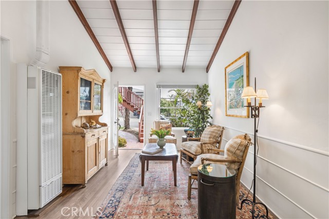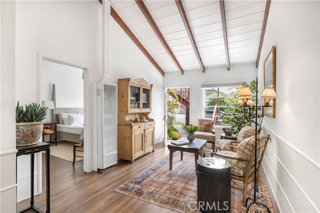 Available furnished or unfurnished. Charming and beautifully remodeled one-bedroom apartment in North Laguna, just blocks from the beach. Located in a quiet and highly desirable neighborhood near Heisler Park, local cafes, art galleries, and downtown Laguna Beach. Inside, vaulted wood-beamed ceilings, abundant natural light, and thoughtful finishes create a warm and inviting space. The updated kitchen features all-new appliances, including a full-size fridge, gas stove, dishwasher, and microwave. A cozy dining area connects seamlessly to the living room for easy everyday living. The bathroom is fresh and bright with a pedestal sink and step-in shower. A wall heater is available for cooler days. Enjoy an outdoor patio area with space to relax or enjoy a morning coffee. Community laundry on-site. Street parking. Sewer and trash included. Offered furnished at $4,000/month or unfurnished at $3,600/month.