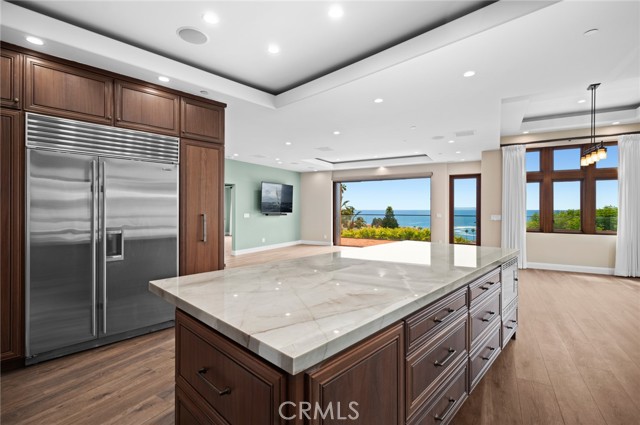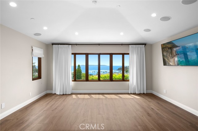 Welcome to this impeccably designed and recently renovated custom home, nestled in the highly sought-after North Laguna. Just a short stroll to the beach and offering sweeping views of the Pacific Ocean, Catalina Island, and the stunning Emerald Bay, this residence defines coastal luxury living. No detail has been overlooked in this elegant home, featuring brand-new hardwood flooring throughout and a state-of-the-art chef s kitchen complete with marble countertops, top-tier appliances, and refined designer finishes. The main level boasts a luxurious primary ocean view suite with a spa-inspired ensuite bath and an oversized walk-in closet, as well as a stylish guest bedroom, a sophisticated living area, and a formal dining room. Step outside to an expansive view deck perfect for entertaining with breathtaking coastal vistas. Downstairs, you'll find three additional bedrooms, two beautifully appointed bathrooms, and an oversized secondary great room perfect for casual gatherings or relaxing with family. The adjacent media room opens seamlessly to the lush backyard garden, providing an effortless indoor-outdoor flow. A private office offers a quiet and refined workspace overlooking the serene landscape. The wraparound garden features a cozy outdoor fireplace and freestanding hot tub offering a tranquil and private setting for alfresco dining and entertaining. This exceptional home combines timeless elegance with modern upgrades and a premier location making it the ultimate coastal retreat.Interested in this Listing?