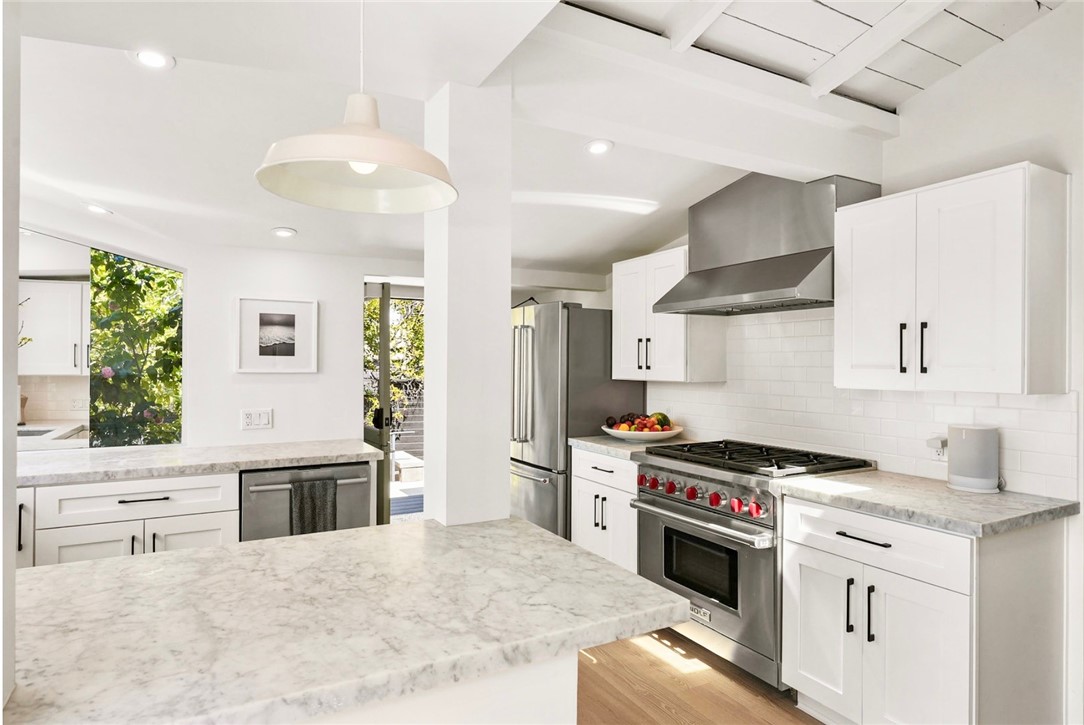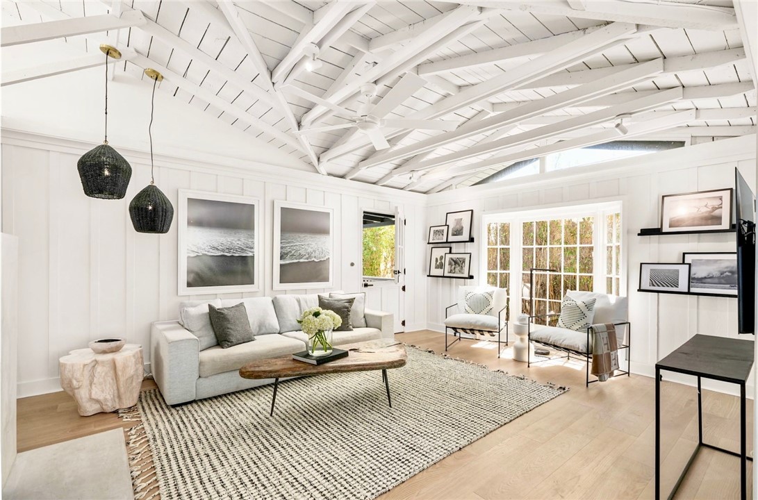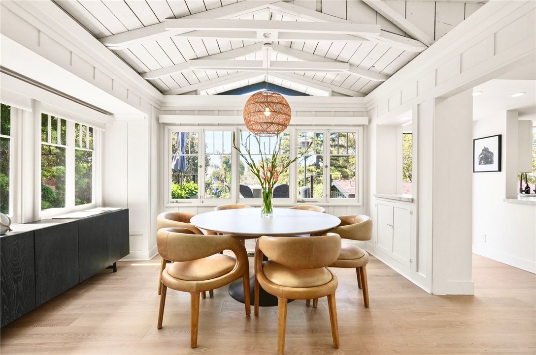 Stunningly Remodeled Coastal Retreat in the Heart of Laguna Beach. Experience the epitome of coastal living in this beautifully remodeled 1926 cottage, ideally situated in Laguna Beach s coveted Woods Cove neighborhood just moments from the ocean and the beloved Bluebird Canyon Park. This charming and historic home offers a serene escape, perfectly blending timeless character with luxurious modern updates. Set on a picturesque corner lot, this fully furnished residence features three spacious bedrooms, each with its own en suite bathroom, plus an additional half bath for guests providing both comfort and privacy for all. The primary suite showcases a Tulum-inspired spa bathroom, and a luxurious soaking tub highlighted by a striking 10-foot skylight that fills the space with natural light and tranquil energy. Throughout the home, refined design details abound, including Carrera marble countertops, custom window treatments, high-end heated bedding, recessed lighting, automated blinds, ceiling fans, and vaulted ceilings adorned with skylights and transom windows. The inviting living room centered around a contemporary fireplace flows effortlessly into both front and rear outdoor living spaces, the indoor and outdoor dining areas, and a light-filled chef s kitchen with an ocean view deck. The modern bathrooms feature Taj Mahal quartzite or marble counters, custom sinks, heated towel racks, all creating a harmonious indoor-outdoor flow that enhances the home s peaceful ambiance. Outside, enjoy mature shade trees, lush landscaping, multiple covered porches, an ocean view deck, a built-in sun bench, a luxury ping-pong table, and multiple stylish dining areas with a built-in BBQ perfect for entertaining or unwinding under the stars. Classic Dutch doors welcome guests into a bright and airy environment, defined by white-paneled walls, fresh coastal decor, and an undeniable sense of tranquility. This exceptional home is the perfect setting for a dream vacation offering timeless charm, modern sophistication, and an ideal location to enjoy the very best of Laguna Beach.Interested in this Listing?