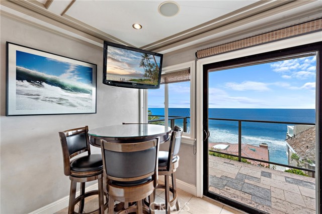 Inspired by the regal essence of the word Lion, Villa Leone offers nothing short of a royal experience. The open kitchen/dining area is adorned with stainless steel appliances and marble countertops, featuring a caf-style table and chairs that provide a picturesque view of the water below. Adding a touch of sophistication, a selection of unique paintings from our exclusive collections graces the Venetian plaster wall surfaces, accentuated by crown molding in every room. The living room, furnished with a leather sleeper couch, ensures a welcoming space for extra guests. The elegantly designed bedroom embraces warm and inviting Tuscany country colors. The spa bathroom is a sanctuary of luxury, boasting designer tiles in the shower/tub and cabinetry adorned with exquisite marble surfaces. Step out onto your private deck from the front door, where the fading sun casts a rose-hued glow over the serene blues of the Pacific Ocean. Villa Leone invites you to revel in regal comfort while embracing the coastal elegance of Laguna Beach