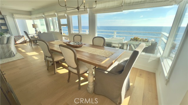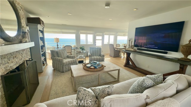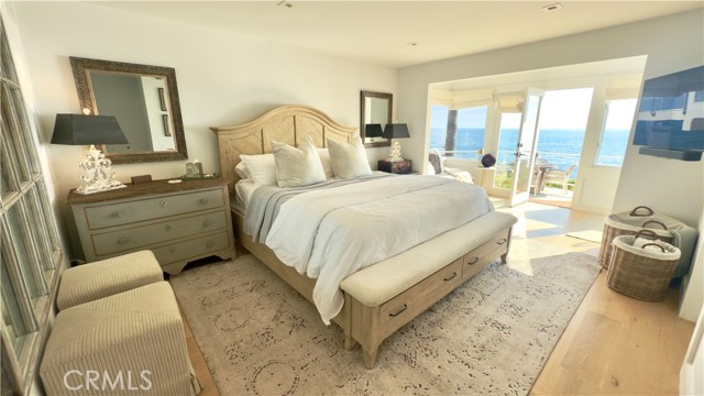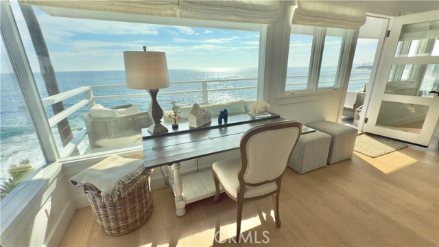 Spectacular Oceanfront retreat with panoramic Coastline views, overlooking The Montage Resort. This designer-decorated, turn-key beach getaway is tucked behind private gates on Camel Point - an exclusive enclave of just 11 homes just steps to the sand along one of Laguna Beaches' longest stretches of coastline. Ideally located close to shops and restaurants (the entrance to the Ranch Resort and Golf Course is just across the way), shopping at Treasure Island Plaza, and steps to Laguna's luxurious Montage Resort & Spa, which is just a quick stroll along the surf. Stroll along the sand to Pier One Cafe for a morning Beignet, lunch, or early dinner. All new and completely remodeled, this charming beach house is equipped with everything you need, just bring your suitcase! This light and bright upscale cottage has open-concept Living and Dining areas with forever ocean views to Palos Verdes. Enjoy Catalina Island Sunsets from every room! Beautiful architectural details throughout - from the wide-plank french white oak flooring, a stone-surround fireplace in the Living room, a gourmet "Chef quality" kitchen with an oceanview breakfast nook and top-of-the-line appliances including a French Lacanche Cluny gas range and double oven, custom marble countertops, and white custom cabinetry. A Butler's pantry with a Wolf coffee station is perfect for creating your morning brew. This house is as functional as it is stylish and complete with Central Air and interior laundry. Step out to your wraparound deck and expansive outdoor patio area overlooking the picturesque whitewater views below. A main-level guest bedroom retreat opens to a courtyard garden patio and the two ensuite bedrooms (including a spacious Primary Suite) on the lower level open to an oceanside patio with Coastline and City light views. Let the waves lull you to sleep after a relaxing day sunbathing on the beach, paddleboarding, or surfing at one of Laguna's famed surf spots. This is a special property with ample indoor/outdoor spaces and lots of privacy!Interested in this Listing?