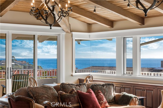 Stunning Ocean View Home in Emerald Bay Furnished 5-Bedroom Residence Experience the best of coastal living in this beautifully furnished five-bedroom, four-and-a-half-bath home located in the prestigious guard-gated community of Emerald Bay. Designed for comfort and elegance, this residence offers main-level living, expansive ocean views, and close proximity to all of Emerald Bay s sought-after amenities. The chef s kitchen is fully equipped with high-end appliances, including two SubZero refrigerators and freezers, two kitchen islands, dual dishwashers, and a large Wolf cooktop. A breakfast nook and counter seating provide a casual dining experience, making the kitchen both functional and inviting. The main level of the home features a formal dining area, a den or TV room adjacent to the kitchen, a spacious and light-filled family room with ocean views, a separate living room that opens to the backyard, and a dedicated two-person office ideal for working from home. The primary suite is a true retreat, offering sweeping ocean views from its private balcony. The en-suite bathroom includes a soaking tub, stone shower, double vanity, and a generous walk-in closet. Also on the main level are three additional bedrooms, one with its own en-suite bath, as well as a powder room for guests. Downstairs, a private guest suite with a full bathroom and patio provides additional space and privacy, along with a laundry area and access to the garage. The backyard is perfect for entertaining and outdoor dining, featuring a built-in BBQ with a spacious prep area, a tranquil stone fountain, a cozy gas fire pit, and a small grassy lawn. Living in Emerald Bay means access to a private, nearly half-mile white sandy beach, six championship tennis courts, volleyball and pickleball courts, a swim center, tree-lined parks, and year-round community events and programs. This home is ideally situated just minutes from Corona del Mar and the heart of Laguna Beach Village, offering both luxury and an exceptional coastal lifestyle.Interested in this Listing?