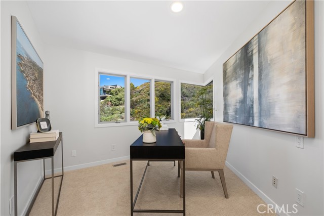 Welcome to 901 Summit Drive, where modern luxury meets coastal elegance. Enjoy breathtaking, sunset and ocean views from all levels within the comfort of this 4-bedroom, 3-bathroom contemporary home. Or you can enjoy them from inside the privacy of spa or the multiple outdoor spaces perfect for entertaining or simply basking in the coastal serenity. The home is approximately 3,518 square feet, sitting on an expansive 7,000+ square foot lot in the Summit Ridge enclave of Laguna Beach. Step inside and be captivated by the seamless combination of space and style. The main level boasts an open-concept layout, adorned with oak flooring that leads through a chef s kitchen featuring stainless steel appliances and spills into the open living room and dining area and a full bathroom. There is a generous primary suite with walnut flooring a walk in closet, nearly a room itself, and spa-like bath. The additional 3 bedrooms are good sized and have just been re-carpeted. Contemporary designer Porcelanosa has provided the custom appointed tiles and fixtures in kitchen and baths. The upper level loft is a bonus area that is currently being used as a family room but is flexible for a number of uses, and has access to the rear yard and open space beyond. Speaking of yard, its almost endless, and has been thoughtfully tailored and manicured with sustainable, drought tolerant landscaping around the property, making maintenance a breeze! Parking is also fantastic with 2 car oversized garage, electrical vehicle connection, elevator access that services each level, plus plenty of additional on-site parking as well.Interested in this Listing?