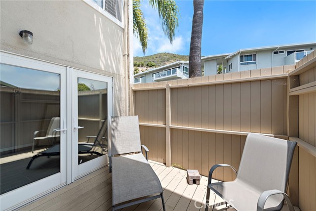 Panoramic Ocean Views & Resort-Style Living in Laguna Beach. Perfectly situated to capture breathtaking sit-down ocean views, this beautifully updated ground-floor condo offers the ultimate coastal lifestyle. Featuring two spacious bedrooms, one full bathroom, and both a large front ocean view deck and a private rear patio, this home blends charm, comfort, and convenience. The kitchen showcases rich cabinetry, granite countertops and flows effortlessly into the breakfast nook and living room. A sliding glass door opens to the spacious, gated front ocean view deck perfect for enjoying ocean breezes, entertaining, or soaking in the coastal atmosphere. The elegant bathroom features cherry cabinetry, granite countertops, dual sinks and a spacious walk-in shower with dual shower heads. Both bedrooms offer ceiling fans and direct access to a fully fenced back patio creating a serene and private retreat. A convenient laundry closet is tucked inside the home. Additional highlights include a detached single-car garage plus ample street parking. The community offers resort-style amenities including a sparkling pool and a clubhouse with panoramic views of Aliso Creek Beach. Located just above the iconic Montage Resort and Treasure Island Beach and only minutes from the vibrant heart of downtown Laguna Beach this home places you close to fine dining, art galleries, and world-class festivals.Interested in this Listing?