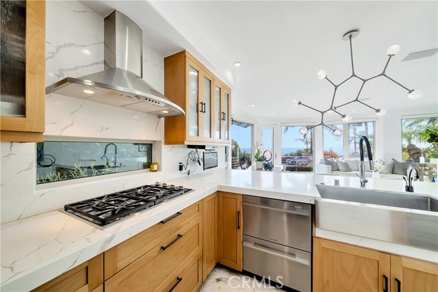 This oceanfront contemporary home is leased fully furnished with the finest details. Perched above the cliffs just between Fisherman's Cove and Heisler Park. The home has three bedrooms and four full bathrooms and can accommodate up to 6 guests. Designed by renowned architect Brion Jeannette with floor-to-ceiling windows across all three levels allowing the view to seamlessly expand across the horizon. The primary bedroom suite is located on the second floor with a private balcony, walk-in closet, and recently renovated bathroom with a walk-in shower and separate soaking tub. There is an additional bedroom on the second level with an ensuite bathroom and access to the private rear patio featuring a custom built-in bbq with a retractable awning and a beautiful stone table to enjoy meals al fresco. The third floor features a large bonus room with exceptional views of the waves, dolphins, sunsets, and Catalina Island. Curl up with the family in the bonus room for movie night or entertain guests. The bonus room is equipped with everything you need, including a mini fridge, microwave, and wet bar. The view from this balcony is second to none for viewing Fourth of July fireworks. The show takes place directly over the ocean from this home. The third bedroom is located on the main floor. There you will also find a recently updated, fully equipped kitchen featuring gourmet appliances, a coffee station, and a wine fridge. This location is easily walkable to all of Laguna Beach's major attractions, including the Main beach, shops, top restaurants, and even The Pagent of the Masters. However, if you prefer, a trolley stop for Laguna Beach's free trolley service is just a few steps from the driveway. Beach chairs and towels are also included to make your getaway a dream. 30-day minimum stay. A 12-month lease is also considered. So much to offer in the famed art colony of Laguna Beach.Interested in this Listing?