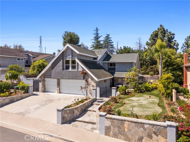 Welcome home to 25501 Sarita, an entertainer s paradise. Situated on an oversized lot on a quiet street in Aliso Place, this rare Laguna Hills property truly has it all. From its stunning curb appeal and thoughtfully upgraded exterior to the energy-efficient solar panels and spacious 3-car garage, this exceptional pool home is a must see. Boasting 4 bedrooms, 3 bathrooms, and a generous bonus room (5th bedroom option), this residence includes a main-level master suite with a cozy fireplace and direct backyard access perfect for indoor-outdoor living, embracing the SoCal lifestyle. Step inside and be greeted by soaring vaulted ceilings, and a dramatic wrought-iron staircase. The open-concept layout features a massive fireplace connecting the family and dining areas, enhanced by newer luxury vinyl flooring throughout. The remodeled chef s kitchen is designed for both function and style, offering a cozy breakfast nook, eat in dining counter, and ample natural light through large windows with custom roller shades. Upstairs, discover three additional spacious bedrooms and a large bonus room ideal for a home office, gym, or media room. The upstairs bathroom includes dual sinks and a separate tub area. The entertainer s backyard is an outdoor oasis with a sparkling heated pool and spa, a spacious covered BBQ area, a putting green, table tennis patio, fruit trees, and mature landscaping ideal for hosting guests or relaxing in your private retreat. No HOA, low taxes, and located within a top-rated school district. You're just a short walk from El Conejo Park, plus close to shopping, dining, and entertainment. Come quick!Interested in this Listing?