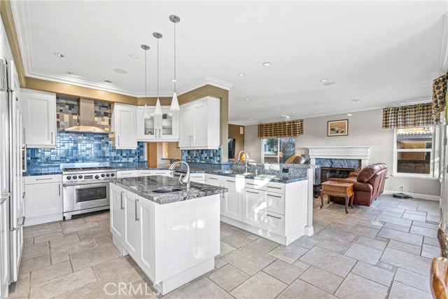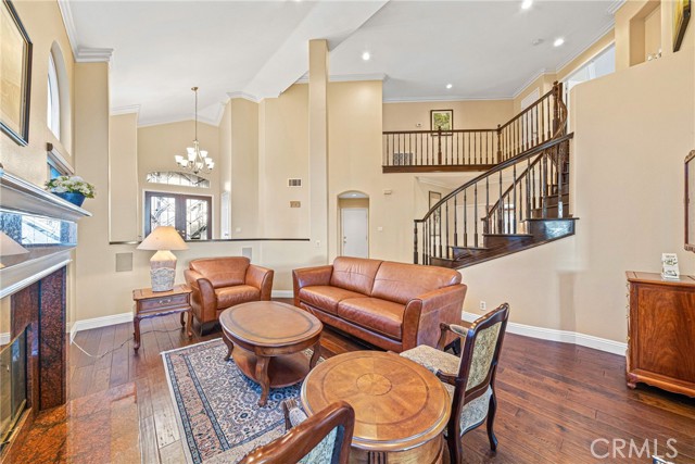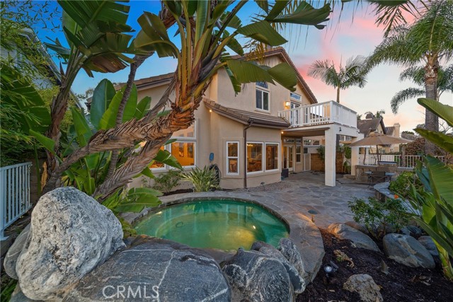Showcasing unmatched luxury and sweeping bluff top views is this gorgeous residence which is situated at the heart of a quiet neighborhood cul-de-sac in the highly sought after hilltop enclave of Moulton Ranch in Laguna Hills. This is the one! With high-end finishes throughout, a downstairs ensuite bedroom, a custom hardscape view yard with an in-ground spa with waterfall and a truly enviable floor plan don t miss this chance. Starting with great curb appeal, including the custom stonework hardscape, mature planting beds and a grassy lawn enter through stunning custom French doors into a soaring vaulted ceilings foyer and formal living room. With great light from large yard view windows, a focal point fireplace the first of three in the home and ample space to spready out the formal living room is open to the formal dining room with large patio view windows which flood these formal spaces with a wealth of afternoon natural light. Off of the dining room is the chef s kitchen which has upgraded cabinetry, top-tier stainless steel appliances, a central island with possible bar seating and a dedicated task sink and a bar peninsula that extends all the way to an adjoining dry bar with stacked wine refrigerators. The kitchen also features a sizeable casual eat in area and view windows out to the patio. Sharing the great room vibe is an oversized family room which has an abundance of space, the second hearth, and is open to the dry bar making this the perfect place to entertain. With French doors out to the patio deck this space offers true indoor/outdoor living. A downstairs ensuite bedroom with step in shower, a guest half bath and an inside laundry room completes the lower level. Upstairs is a large second family room space and 3 additional bedrooms that start with the spacious primary suite which has a stunning spa like ensuite with a custom dolphin shower enclosure, granite counters, a privacy water closet door, a walk in closet and great light. A cozy third fireplace and a private panoramic view deck complete this must-see primary retreat. Two additional bedrooms and an updated guest bath complete the upper level. Featuring an attached 3 car garage, a 3 car driveway, and countless upgrades, make sure you see this home! Minutes from a local neighborhood park, great schools, shopping, dining and commuting options, the beach and everything South County has to offer don t miss this opportunity!Interested in this Listing?