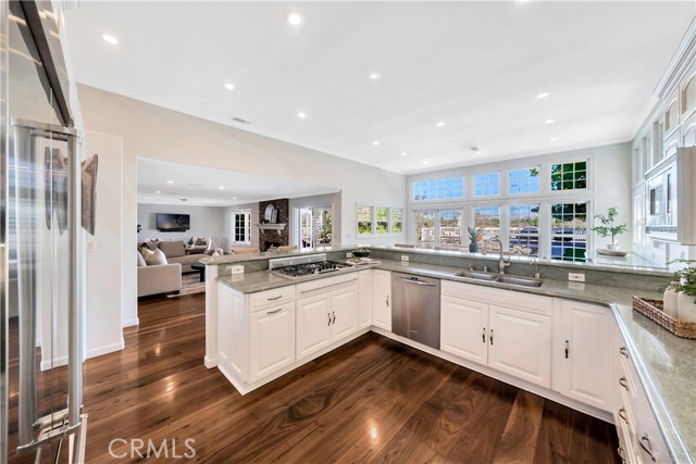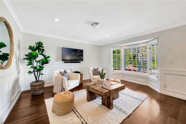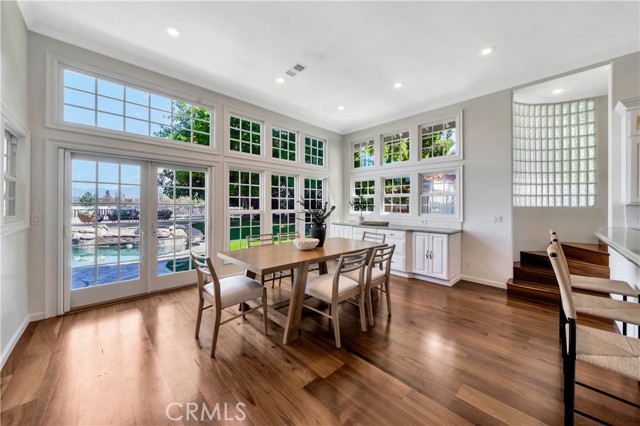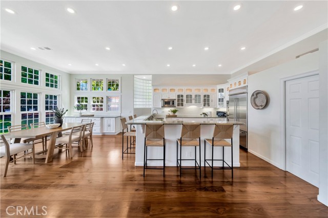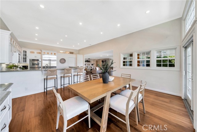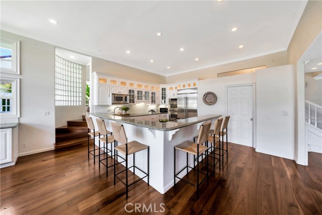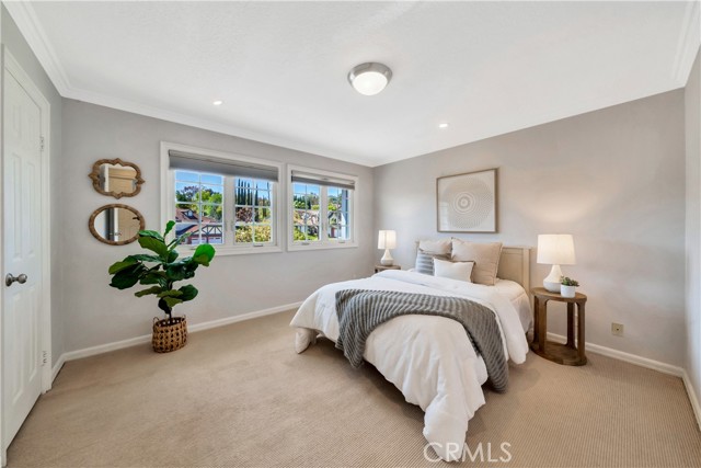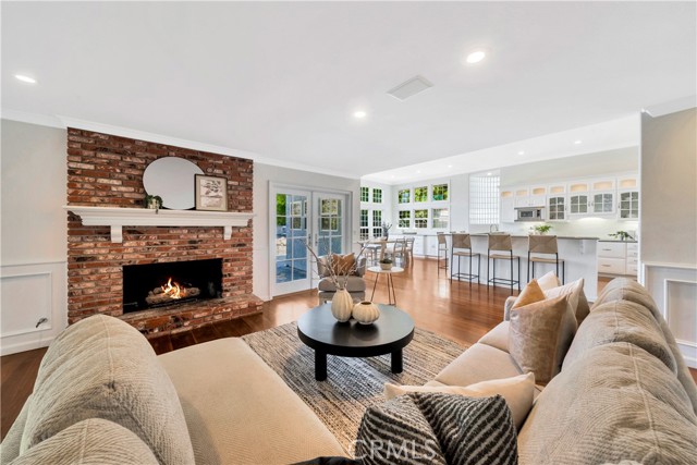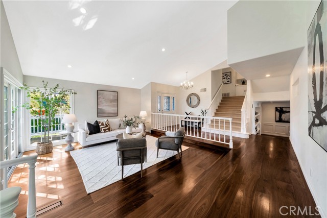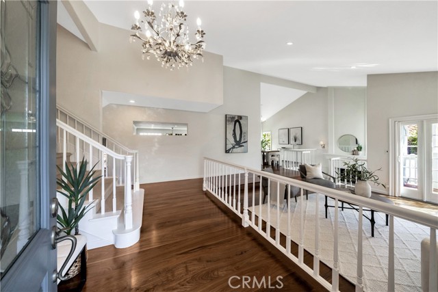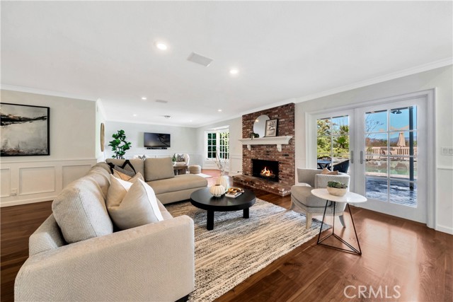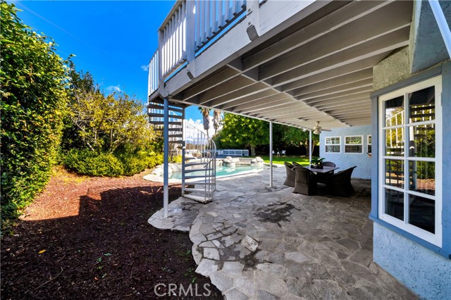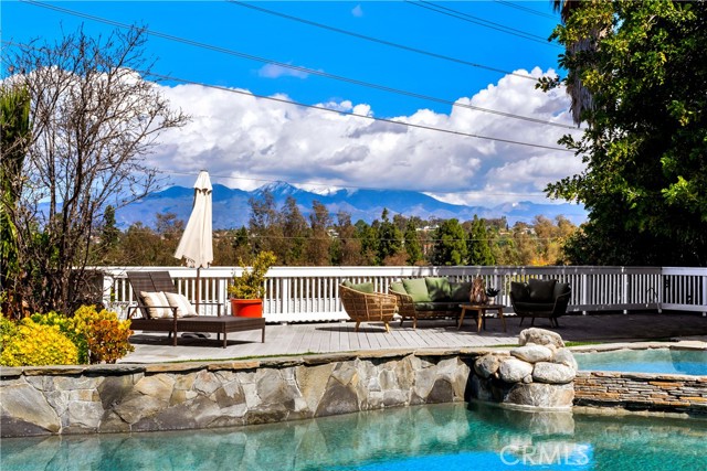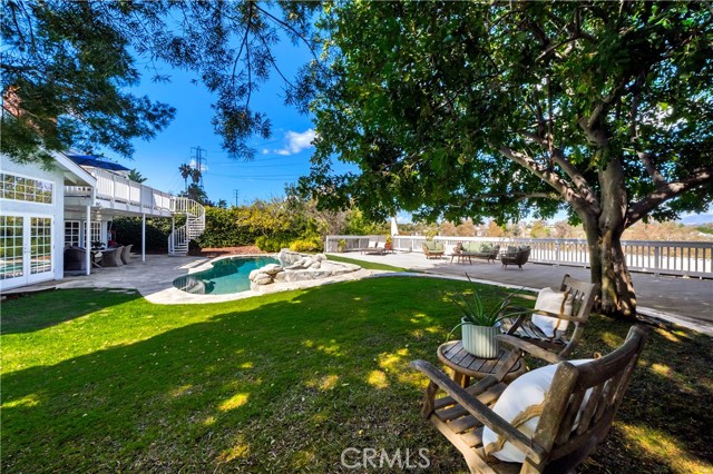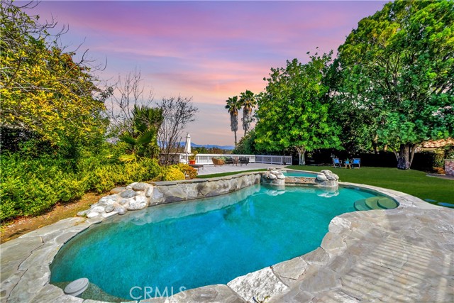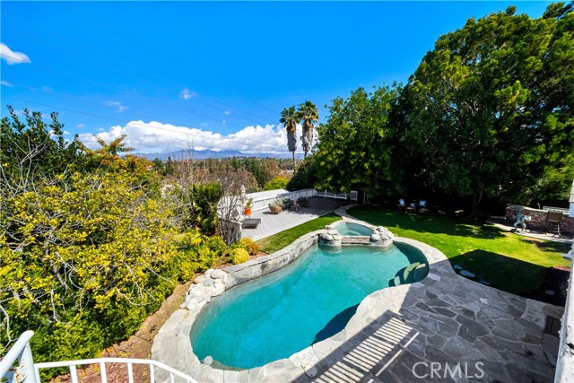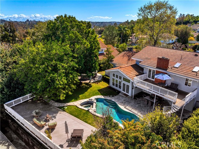 Located on a quiet cul-de-sac, this semi-custom Nellie Gail Ranch home offers breathtaking views and a thoughtfully designed layout. Featuring four bedrooms and three full baths, this residence seamlessly blends comfort and elegance. The living room, complete with a cozy fireplace, leads to an open-concept kitchen boasting soaring ceilings and a stunning wall of windows that flood the space with natural light. A spacious family room and a lower level bedroom add to the home's functionality. The luxurious primary suite is a private retreat, featuring its own deck, fireplace, and sitting area. The spa-like primary bath includes a soaking tub, dual vanities, and ample storage. The two additional upper level bedrooms are amply sized. Step outside to a backyard oasis, complete with a sparkling pool, spa, and built-in BBQ perfect for entertaining. Additionally, the property features horse stables that offer the potential for conversion into an Accessory Dwelling Unit (ADU).Interested in this Listing?