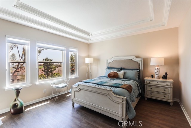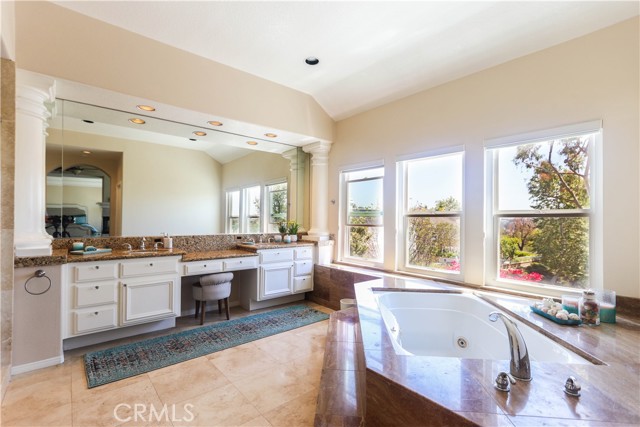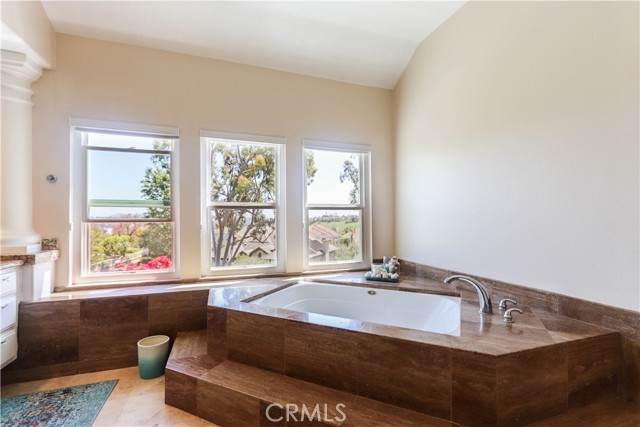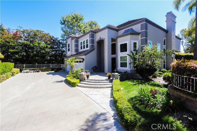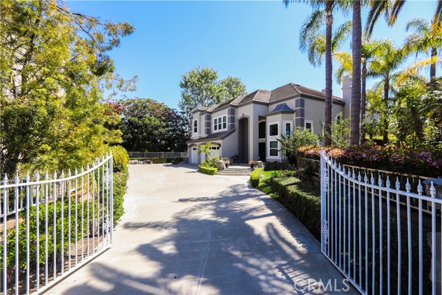 Nestled in a quiet cul-de-sac , this Stunning privately gated property offers privacy, luxury and breathtaking views. From its elevated position,the home captures sweeping vistas of city lights at night and majestic mountains by day. Flooded with natural light, every room in this house feels warm and inviting. As you enter , the large office/ library with its French doors offers a secluded space away from the main family area. You step down into a formal living room with vaulted 20 ceilings centered with a fireplace that showcases an impressively tall mirror above its mantle. The room also features a modern metal and glass elevator with convenient access to the second floor, in addition to the beautiful spiral staircase. Arched entryway and classic columns guide you into a light and airy dining room with big windows and entrance into a side yard with lush plant and a waterfall to enjoy a relaxing moment after dinner. All flooring downstairs except the kitchen, is a faux-wood stone material that combines the warmth of wood and the durability and ease of maintenance of stone. The kitchen is open to the family room, it has a center island with bay windows the spacious family room has a fireplace to enjoy on chilly nights and it also leads you into the serene backyard with flowering plants and fruit trees that provides an oasis of calm and beauty. The thoughtful layout of this residence includes a first floor bedroom with en-suite bathroom for guests or multigenerational living. Upstairs the luxurious primary bedroom with wall to wall windows opens into a beautiful sitting area with a fireplace, sunken jetted bathtub, stand alone shower and two walk-in closets. Three more bedrooms and two bathrooms complete the second level , along with a bonus area that has versatile uses. The exterior is freshly painted , interior has newish custom paint and designer wallpaper, newer energy Efficient double paned windows with custom shades. Located in the highly sought after community of Moulton Ranch , this home is minutes from top-rated schools, shopping, dining and beautiful beaches. Neighborhood community park is within walking distance. Come experience the elegance , comfort and convenience of one of the area s most desirable neighborhoodsInterested in this Listing?