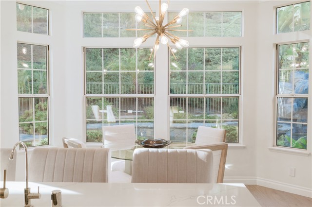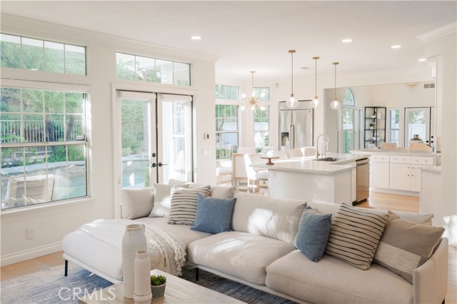 An icon of luxury living in Laguna Hills, this beautifully remodeled 5-bedroom, 4.5-bath home in the coveted Moulton Ranch community offers 3,899 square feet of elegant, open-concept living. Step inside to be greeted by soaring ceilings and stunning floor-to-ceiling windows that flood the main living room with natural light, creating an inviting sense of warmth and grandeur. The heart of the home is the expansive kitchen, thoughtfully redesigned by opening walls to create an airy, open space perfect for both everyday living and entertaining. High-end finishes and a functional layout make this kitchen truly stand out. Adjacent to the kitchen, the family room offers a cozy comfort and features custom-built cabinetry perfectly suited for quiet nights in or hosting larger gatherings with ease. A graceful, sweeping staircase connects the two levels, overlooking the living room below and adding a touch of architectural elegance. Upstairs, the primary suite is a tranquil retreat, boasting a spa-inspired bathroom with a luxurious soaking tub, sleek walk-in shower, and a stylish vanity area carefully designed. Upstairs, a versatile secondary living space offers room to relax, work, or unwind easily accommodating a media setup, reading nook, or lounge area. The additional bedrooms provide generous space and flexibility to meet a variety of lifestyle needs. Freshly remodeled interiors and timeless style combine with a prime location near top-rated schools, scenic parks, and the vibrant amenities of Orange County, making this home a rare find in Laguna Hills.Interested in this Listing?