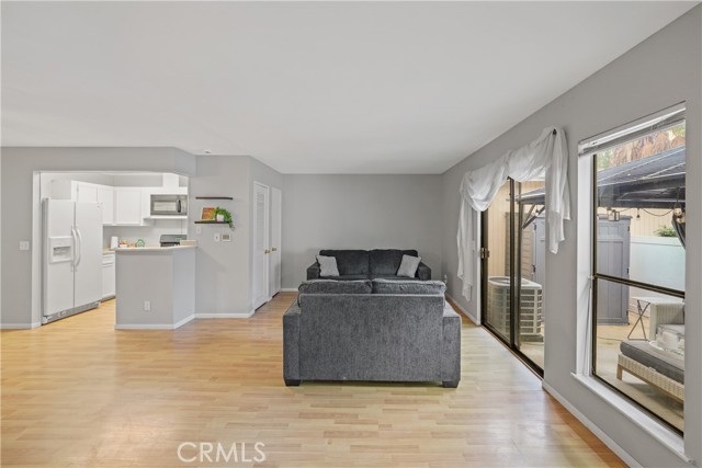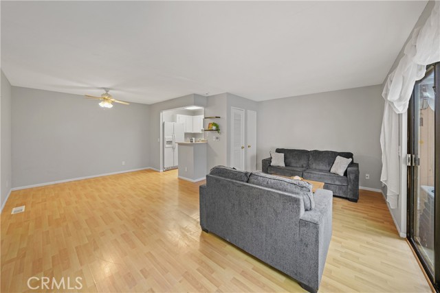 Welcome home to this wonderful single-story condo in the heart of Laguna Hills. This unit includes two bedrooms and one full bathroom, an open concept living room, dining room and kitchen with laminate flooring throughout. Both the living room and main bedroom have sliding glass doors with direct access to the patio. You have private inside laundry, with the washer and dryer included. This home includes a newer HVAC system. As you walk in you have a wonderful patio area with a newer covered gazebo, artificial turf and privacy that offers a great space for your family, pets and friends. The community includes two assigned parking spaces; and trash, water, grounds maintenance and insurance fire coverage for building structure are included in your HOA fee. Whether you're a first-time buyer, downsizing, or searching for a great investment, this desirable location is located within minutes to both the I-5 freeway and the 73-TollRoad connecting you quickly to all of Orange, San Diego and Los Angeles Counties.Interested in this Listing?