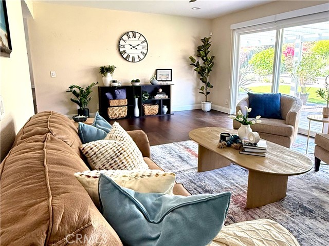 NEVER RENTED BEFORE: Four bedroom, three bath home in Acacia Knolls, in Laguna Hills! Conveniently located off the 5 FRWY, off Alicia Pkwy. One good sized bedroom and full bath down and three large bedrooms upstairs. Wood flooring throughout lower level and carpet throughout upstairs. Upgraded kitchen, Stainless steel appliances (including fridge with filtered water/ice maker), custom cabinets with lazy-suzan features and pull out drawers. Upgraded bathrooms, vanity and baths/ showers. High end ceiling fans in bedrooms, closet organizers in bedroom closets, large family and living room, intimate dining area and a formal dining room, and large back yard. This home has it all! Several custom built-in's cabinets throughout home. Master bedroom has a large deck, great for watching fire-works on July 4th. Low maintenance yard with artificial turf in front and back. Two car garage with storage cabinets and plenty of street parking. Includes washer and dryer in garage. Close to schools, shopping, transportation, Saddleback Hospital, City Hall, parks, and restaurants. This is a must see!Interested in this Listing?
