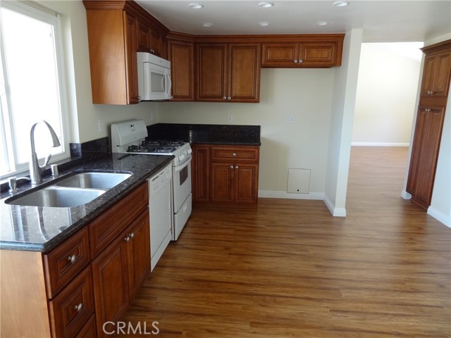 Absolutely adorable single level home near Costeau Park. The remodeled kitchen ads the perfect cabinet space to this open floor plan. The kitchen also features recessed lighting, granite counters, upgraded appliances, a stainless steel sink, and a garden view window. Wood laminate flooring throughout the living room, hallways and kitchen. Tile flooring in the bathrooms and carpet in the bedrooms help keep this home sparkling clean. Vaulted ceilings in the living room features recessed lighting. Bathrooms have been remodeled with granite counter vanities, white wood trimmed mirrors and decorative lighting. Two car garage with direct access into the home features a laundry area and roll up garage doors accented with windows. The huge yard is like having your own private park. Beautifully landscaped with a brick trimmed patio, orange, lemon, and tangerine trees. There's even a fun garden box to grow your own veges. Relax under the large patio cover you enjoy this private location. This home is ready for you to move in.Interested in this Listing?