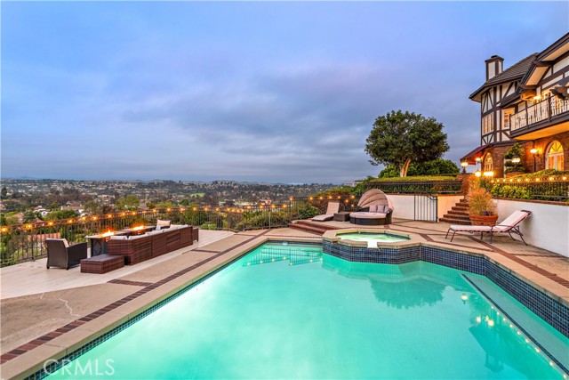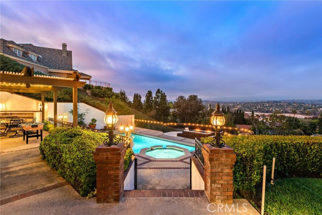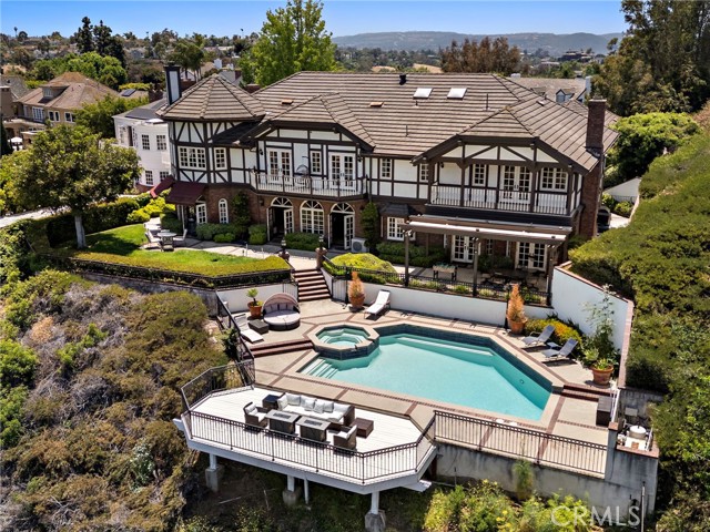 Gated and Grand, this stunning estate better known as "Laura Manor" is situated on a full acre in the prestigious Nellie Gail Ranch. Boasting breathtaking views, exceptional privacy, and timeless Tudor elegance, this nearly 6,000-square-foot residence seamlessly blends classic architectural details with modern comforts, all set against a backdrop of rolling hills and shimmering city lights. From the moment you arrive, the home makes a lasting impression brick masonry, pitched gables, lantern lighting, and an arched entryway framed by leaded glass panels showcase true craftsmanship. Inside, a grand double-door entrance opens to a dramatic foyer filled with natural light, warm wood accents, and rich mahogany finishes. The chef s kitchen is beautifully appointed with Kamarica granite countertops, a large center island, and top-tier appliances designed for everyday ease and elevated living. With six bedrooms and seven and a half bathrooms, comfort and space abound. Each upstairs bedroom opens to its own private balcony with picturesque views including front-row seats to Panoramic Fourth of July fireworks. Additional highlights include a wine cellar, a handsome wood-paneled study, multiple fireplaces, and a seamless mix of formal and casual living areas. Outdoors, the property features a sparkling pool and spa, expansive patio space, and mature landscaping that enhances both beauty and privacy. A long, gated driveway and spacious parking area provide ample room for multiple vehicles. As night falls, Laura Manor glows with quiet elegance its architecture illuminated and its setting serene. The backyard, with its soft lighting, mature landscaping, and sweeping breathtaking panoramic views, is nothing short of spectacular a true retreat under the stars. Graceful, welcoming, and beautifully situated, Laura Manor offers refined living in one of Orange County s most coveted communities. This phenomenal property is offered "furnished or unfurnished"!Interested in this Listing?