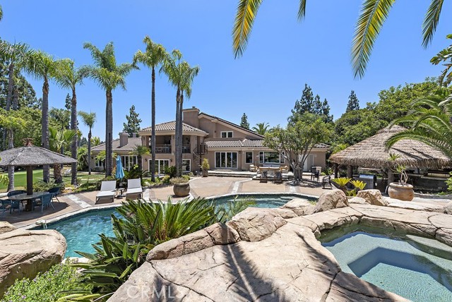 Indulge in opulence and privacy at this fully furnished 1.2 acre Nellie Gail Estate, featuring sweeping hillside views across its meticulously renovated interior of approximately 6,605 square feet. This home elevates the way you live with a luxurious primary bedroom suite on the main level that includes a welcoming foyer, resort-style shower/bathtub/dual-vanity, voluminous walk-in closet, and sitting area with fireplace. Enjoy a second primary bedroom suite with walk-in closet, 4 additional bedrooms, 8 bathrooms, formal dining, 2 living rooms, home theater room, separate butler's kitchen, and a chef's dream kitchen with DCS 6 burner stove, Sub-Zero refrigerator, Dacor double oven and Bosch dishwasher complimented with a spacious quartz island. Inside, relish the luxury of fully furnished interiors. Outside, the enchanting backyard oasis offers multiple options for entertaining: expansive pool with waterfalls and water slide, spa, pond, putting green, fruit trees, covered BBQ/bar area, tropical garden, and a Balinese gazebo. The seamless transition to the coveted California room with breathtaking mountain views enhances the allure and lifestyle. This gated estate also comes with a wide range of luxurious amenities, including solar panels for the house and pool, water filtration system, and options for electric car charging. The property is located near top ranked schools, parks, and the Nellie Gail community center (equestrian, tennis and swimming). Whether you're looking to entertain or simply relax, this Nellie Gail Estate has everything you need to live your best life. Your private sanctuary awaits, complete with a circular driveway, 3-car garage, and 2-car carport, all fully furnished for your indulgence.Interested in this Listing?