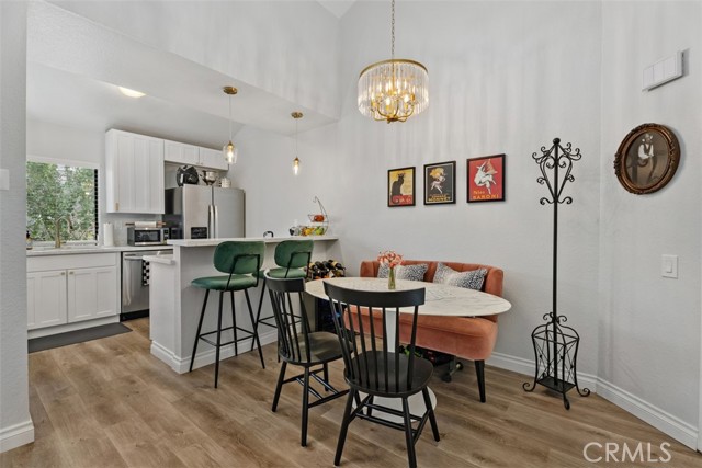 You will fall in love with this open concept condo, situated on the upper level offering a private deck overlooking a peaceful pond and surrounded by lush, mature trees. The light-filled interior features soaring cathedral ceilings, new paint, kitchen and appliances with quartz counters, a cozy living room with and extra space for a desk, and direct access to the patio. The kitchen and dining area features beautiful brass fixtures and custom lighting. The spacious master suite includes vaulted ceilings, a walk-in closet and in-unit laundry for added convenience. The master bathroom has been tastefully upgraded with a tub/shower combination and tile surround. Located in the desirable Quail Creek complex, residents enjoy access to pools, spas, sauna, tennis courts, a dog park, scenic streams, ponds, and beautifully maintained greenbelts. The rent includes water, trash, sewer and gas; the tenant is only responsible for electricity and their own personal insurance policy. The unit includes an assigned covered parking spot. Easy access to freeways, restaurants, walking trails and shopping. The home is also available furnished if desired at a higher price, please call to inquire.