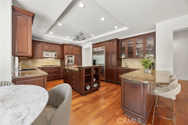 Ideally positioned at the end of a secluded cul-de-sac on a sprawling parcel of over half an acre, 21 Mykonos presents a rare opportunity in today's market. This highly upgraded and thoughtfully expanded residence offers over 2,700 square feet of refined living space, featuring four bedrooms, four bathrooms, and expansive outdoor areas designed for both relaxation and entertaining. The private grounds are a true highlight, showcasing a flagstone patio with an in-ground spa, an outdoor cooking space, fire pit, and a vast side yard with manicured sod perfect for recreation, gatherings, or future enhancements. Inside, the home welcomes you with a sense of warmth and volume, highlighted by soaring vaulted ceilings and a dramatic two-sided fireplace that connects the elegant living room to the formal dining area. The chef s kitchen impresses with custom cabinetry, slab countertops, stainless steel appliances, a spacious center island, and a bright breakfast nook all seamlessly connected to a generous casual living space. The main level also includes an upgraded powder room and a well-appointed laundry room with abundant counter space and storage. Upstairs, the expansive primary suite offers dual walk-in closets, custom built-ins, and a spa-inspired bathroom with a soaking tub and separate shower. Three additional bedrooms and two full bathrooms complete the second level, creating a flexible and functional floor plan suited to a variety of lifestyles. The rear yard offers exceptional privacy and is perfectly suited for al fresco dining or hosting large gatherings in a tranquil setting. Just a short block away, residents enjoy access to the coveted Marina Hills Recreational Center that features a Junior Olympic pool, spa, tennis and pickle ball courts, a beautifully appointed clubhouse, parks, playgrounds, and the scenic Salt Creek Trail.Interested in this Listing?