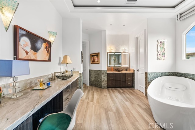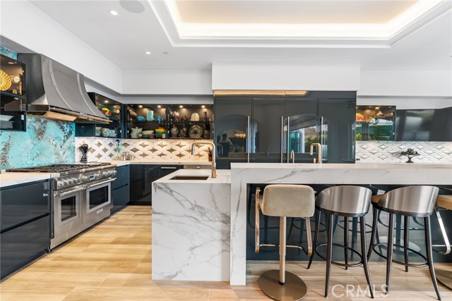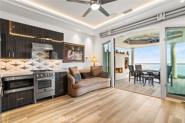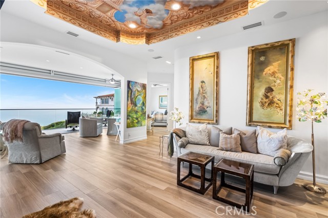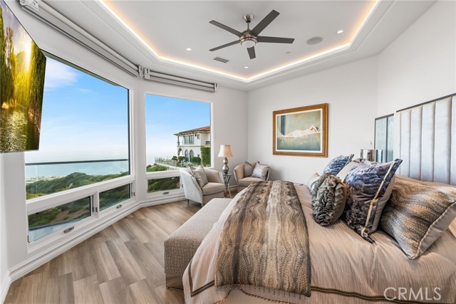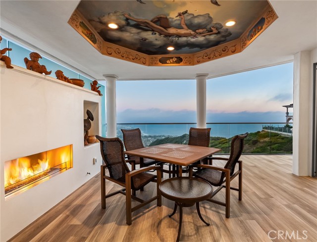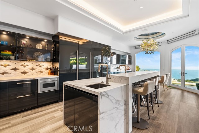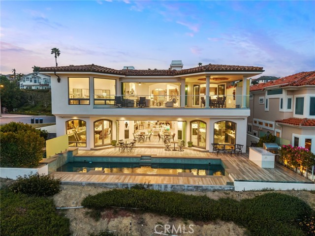 Set high above the coastline in the guard-gated enclave of Monarch Point, this newly transformed estate offers sweeping views from Dana Point s cliffs to Monarch Bay s coves. Every element of this hilltop retreat is curated for a refined lifestyle, blending indoor-outdoor living, modern style, and smart technology. A soaring 20-foot entry is crowned by a custom Murano glass chandelier. Floor-to-ceiling doors fill the home with light and open to a resort-style backyard with a pool, spa, porcelain deck, built-in DCS BBQ, and patio heaters ideal for entertaining. The living room boasts a Napoleon linear fireplace framed in rare Black Carnelian stone, an 83 Sony Bravia TV, and five-speaker surround sound. A sleek bar with Sub-Zero fridges and Italian Cantoni cabinetry flows to a dining area with sunset views and a crystal chandelier. The chef s kitchen features Thermador appliances, a Calacatta porcelain island, Fisher Paykel dishwashers, and a walk-in pantry. A breakfast nook sits beneath a glass chandelier and a frescoed ceiling by acclaimed artist Donovan Fitzgerald. The main level includes a private guest suite with separate entrance, kitchenette, full bath, and a Fitzgerald-painted ceiling. A dedicated office with LED lighting and custom shelving adds functionality. Upstairs, stainless double doors open to an ocean-facing primary suite with dual spa-like baths, walk-in closets, lounge with Napoleon fireplace and 83 Sony TV, and a full secondary kitchen. A Coverglass system opens to a wraparound balcony with panoramic views, fireplace, and another Fitzgerald fresco. Upgrades include new landscaping, pool/spa equipment with Aqualink, a 1,200-bottle wine cellar, tankless water heater, HVAC with Ecobee thermostats, Clare security with six Luma cameras, private elevator, Toto toilets, steam showers, and porcelain plank tiles throughout. Reverse osmosis systems serve all kitchens and bar sinks. A glass-floored landing under a skylight adds a striking architectural touch. Control4 automation and Lutron shades complete this smart coastal sanctuary. See Supplemental attachment for all the incredible details of upgrades!Interested in this Listing?