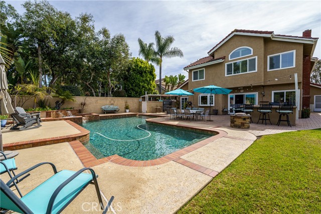 Exceptional Coastal Living in Laguna Niguel Rare Plan 5 Palisades Home with 4-Car Garage Discover a rare opportunity to own a sought-after Plan 5 Palisades home the only model in the community with a four-car garage. Nestled on a spacious 7,800 sq. ft. lot, this stunning property features a resort-style backyard with a sparkling pool and spa, BBQ island, fruit trees, a large lawn, and a paver patio perfect for entertaining. Enjoy exceptional privacy and a peaceful ambiance, making this backyard a true retreat. Step inside to a grand foyer with soaring ceilings and a custom wrought iron staircase. The expansive living room is perfect for gatherings, while the formal dining room seamlessly connects to the backyard for effortless indoor-outdoor living. At the heart of the home is a gourmet chef s kitchen with all the bells and whistles, featuring custom high-end cabinetry, ideal pot and pan drawers, premium stainless steel appliances, and a separate warming drawer. The oversized center island is ideal for meal prep, casual dining, and hosting. The kitchen flows into the spacious family room, complete with a cozy fireplace and built-in media wall. This five-bedroom home includes an oversized upstairs bedroom that can serve as a game room, gym, or split to make it a total of six bedrooms. A versatile downstairs office/bedroom with patio doors provides a great guest suite or workspace. Upstairs, the bedrooms boast soaring ceilings, large closets, and generous square footage. The primary suite is a luxurious retreat with serene backyard views and breathtaking sunsets. Its spa-like bathroom features a walk-in closet, separate shower, and an oval soaking tub. Additional features include a large laundry room with cabinetry and a large sink and many dual pane windows for tons of natural light. Located in the desirable Palisades neighborhood, this home offers access to scenic trails leading to Chapparosa Park and Salt Creek Beach without crossing a street (all huge tunnels to the sand). The community hosts year-round events, fostering a vibrant neighborhood spirit. With easy access to Dana Point Harbor, Laguna Beach, and top dining options, this home blends coastal luxury, privacy, and community living. Don t miss this rare opportunity schedule a private showing today!Interested in this Listing?