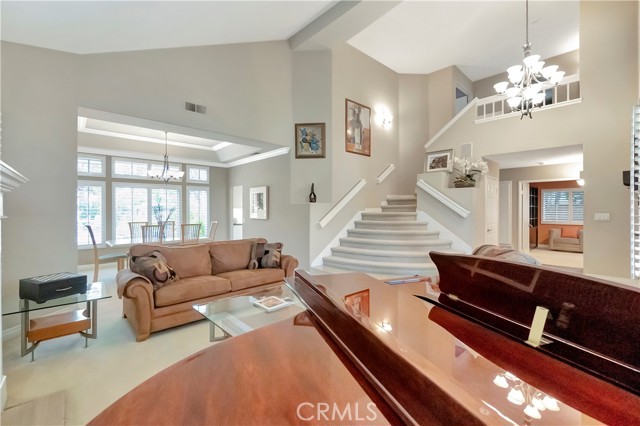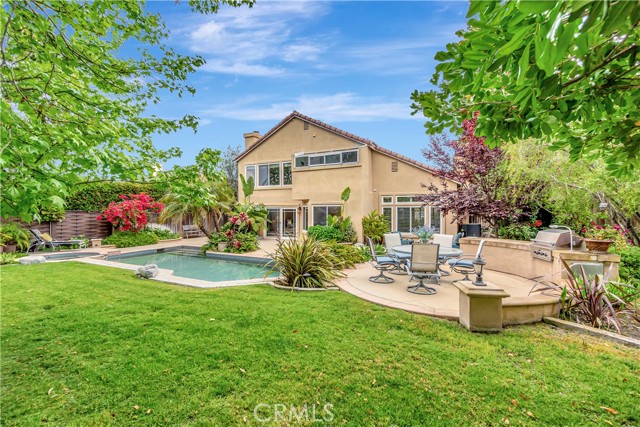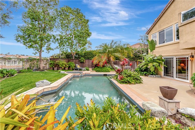 This fabulous Laguna Niguel home is situated in the highly sought-after beach close, community of Tesoro, on a 13,770 sq. ft. flat lot on a peaceful cul-de-sac. It is an exceptional 5-bedroom home offering a spacious, open plan. Beautifully appointed throughout, you will enjoy the remodeled kitchen opening to the family room and to the gorgeous backyard with pool, spa, & built-in barbecue. The kitchen is complemented with high end appliances, white, soft-close cabinetry, quartz countertops, new gas cooktop with 6 burners, double oven/convection & microwave combined, & a separate coffee bar with cabinets & glass paneled display cabinet doors. Porcelain tile flooring throughout the downstairs. The family room & living room have wood burning fireplaces with gas starters. The volume ceilings in the living room & dining room add to the dramatic feel of this home. Check out the downstairs bedroom with adjoining bathroom w/shower. This convenient main floor bedroom is currently being used as an office w/built-in wood bookshelves & desk. Relax in your private, beautifully landscaped backyard designed with multiple entertaining areas & outdoor lighting. The saltwater system for the pool & spa is easily operated on your phone; it has the necessary components to easily install a safety fence too. The four upstairs bedrooms are wonderfully spacious. The main upstairs bedroom overlooks the backyard & greenbelt. Its bathroom has a separate jacuzzi tub & shower, dual sinks, & walk-in closet. The secondary upstairs bathroom has been upgraded with newer cabinetry, countertop, sinks, fixtures, lighting, & step-in shower. This great home offers additional enhancements - a new roof installed in 2023, owned solar system, upgraded HVAC w/ultraviolet air filter, AI-assisted programmable central heating & air systems w/app, PEX re-pipe completed in 2013, dual pane windows & sliding doors, recessed can lights, full house water filtration system, smart sprinklers w/app, fully wired internet data throughout home, security cameras around house w/app, 3-car garage w/epoxy floor & upgraded lighting. In walking distance of The Club at Rancho Niguel offering 3 pools, spa, tennis, pickleball, and basketball courts, gym, playground, BBQ/picnic areas and clubhouse for private rentals. A short walk to Laguna Niguel Regional Park w/ lake, fishing & walking trails. Close to Aliso Wood Canyon w/ extensive hiking trails. Great schools, shopping, & restaurants. Race to this home!Interested in this Listing?