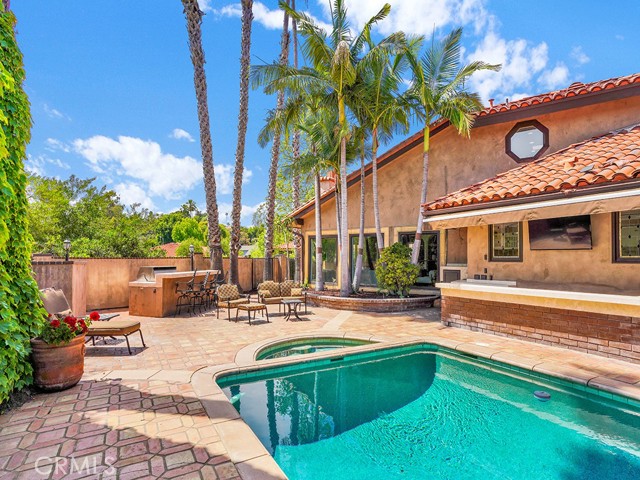 This stunning estate is set on a 20,000+ sq ft lot with panoramic views of the 14th hole at El Niguel Country Club. This home offers 4 bedrooms, an office and 4.5 bathrooms. From travertine flooring to soaring vaulted ceilings, every inch of this home exudes timeless elegance. A custom-built office with coffered ceilings adds sophistication and functionality. The open-concept living area features a fireplace, built-in bar, formal dining space, and a temperature-controlled walk-in wine cellar perfect for entertaining. Upstairs, the expansive primary suite offers a private balcony with tree-lined fairway views, a luxurious bathroom adorned with gold travertine, and an oversized custom walk-in closet with glass doors and gold hardware. Each additional bedroom includes an en-suite bathroom and custom closet design. The chef s kitchen is equipped with Dakota granite countertops, stainless steel appliances, and generous cabinetry. The spacious laundry room features a sink, built-in dog crate, ample counter space, and a view of the fountain and pool. Flooded with natural light through large windows, the home flows seamlessly into a private entertainer s backyard with a resort-style pool, built-in BBQ, outdoor bar, and retractable awning for shaded lounging. This one-of-a-kind estate blends luxury and comfort. Located near great schools, parks, restaurants and beautiful beaches. This home offers it all!Interested in this Listing?