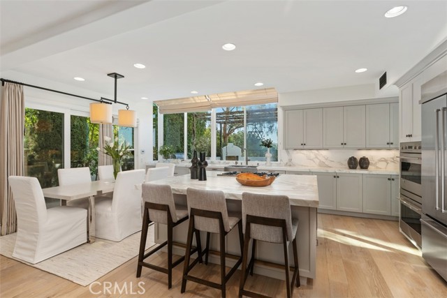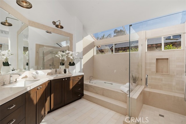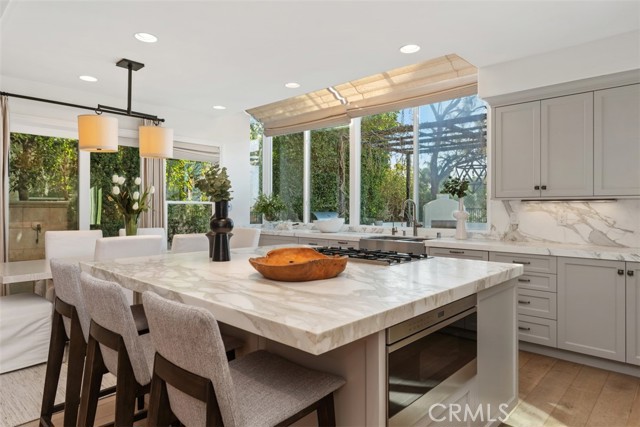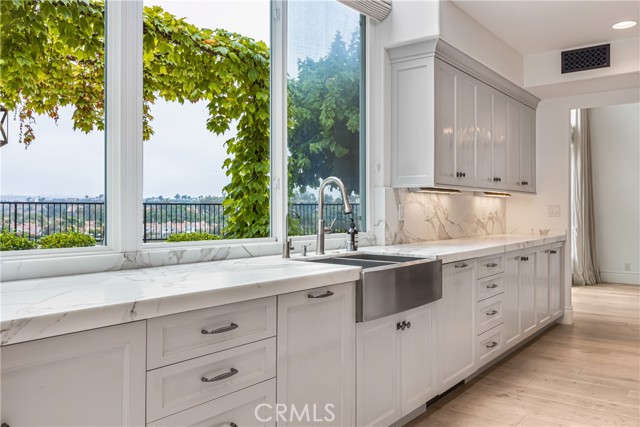 Hillside sanctuary with forever sunset views. Life unfolds gracefully in this private view residence, positioned at the end of a cul-de-sac in prestigious Marina Hills. Set on a single-lined street with no direct neighbors front or back, the property commands an exceptional vantage point, facing open green space and backing to expansive western views that capture sunset colors over rolling hills. Arrive on a gated stone path to the covered entry and new oak double doors. Inside, a double-height foyer sets the tone for the home's grand proportions. The interior blends luxury amenities and updates with a soothing natural palette, including new oak floors, linen shades throughout, and water features off the entry and kitchen, inviting calm and relaxation in every space. The formal living room, anchored by a stately fireplace, opens to a dining space that captures miles of natural vista through generous windows. The chef s kitchen attests to both form and function, featuring marble countertops and new premium appliances. The open concept joins seamlessly with an eat-in dining area and family room, extending naturally to outdoor living spaces. The backyard becomes an extension of the home's living area, featuring an extensive hardscape with outdoor fireplace, BBQ, and a jacuzzi, ideal for evening entertaining against the backdrop of sunset. Upstairs, vaulted ceilings enhance three generously sized bedrooms, including a primary retreat with a sitting area and spa-inspired ensuite with double vanity. A fourth bedroom is on the main level. This enviable location is only moments from Marina Hills' abundant amenities, including a community pool, parks, tennis courts, and recreation center. Beaches, local boutiques, hiking trails, and major freeways (5 and 73) are easily accessible, offering the perfect balance of secluded living and urban convenience. A rare offering where privacy, views, and luxury amenities unite to create an exceptional living experience.Interested in this Listing?