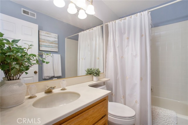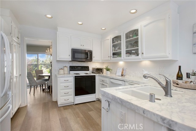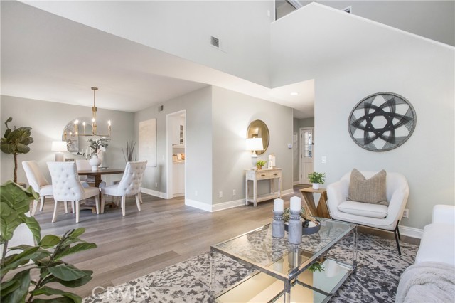 SPECTACULAR BEACON HILL LOCATION WITH PRIVATE YARD & PANORAMIC SUNSET VIEWS! Boasting a premier cul de sac location with breathtaking views, this single family home offers 2 primary bedrooms upstairs each with their own bathroom plus a downstairs den/office that many use as a bedroom that is large and spacious. The home has soaring cathedral ceilings and a ton of natural light and huge windows in the living room with fireplace and has an adjacent formal dining room & a big slider out to the serene yard and panoramic views. Luxury vinyl floors throughout the main level and carpet on the stairs and upstairs. The remodeled kitchen has refinished and painted cabinets with hardware, pullout corner cabinets & with Carrara marble countertops and backsplash. There is also a kitchen nook area with chandelier. Remodeled main floor bathroom with Carrara marble countertop and backsplash. The downstairs room is plumbed for a wet bar area that could be converted to a closet if used as a bedroom. The larger of the two primary bedrooms upstairs has a wonderful balcony overlooking the backyard and has some of the best views from the home plus a storage closet. The bathroom has dual sinks and a large walk in closet. Fresh exterior paint and woodwork(Cement boards) done in 2024 by the HOA. Rain gutters with leaf guard. Hot water replaced in 2021. New furnace installed in 2024 and AC installed within the last 5 years approximately. Repiped with PEX in 2013 (adjacent neighbors also repiped). Front gated courtyard entrance with lush landscaping & gorgeous Japanese maple tree. Backyard with pergola and brick accents. Two car attached garage. HOA amenities include three pools (one walking distance on Parkman), 6 lighted tennis courts. Close to parks, fields, walking trails, Salt Creek corridor and 2 miles to the beach.Interested in this Listing?