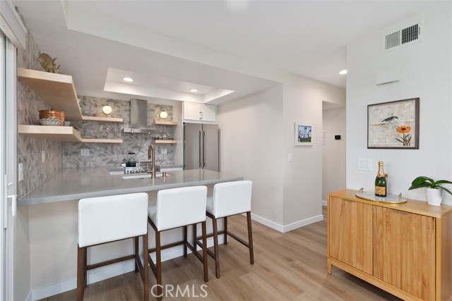 Tucked away in a peaceful corner of the community, this stunning 1-bedroom, 1-bathroom end-unit condo has been completely remodeled with thoughtful designer touches throughout. Offering 715 square feet of light-filled living space, the open layout flows effortlessly from the sleek kitchen to the stylish living area and out to not one, but two private patios. With no units in front and direct access to a lush green lawn, this home feels like a serene retreat. New waterproof luxury laminate tile floors and new baseboards flow seamlessly throughout the home. The modern kitchen features open shelving, custom tile backsplash, and high-end finishes, with brand new stainless steel Forno appliances. The bathroom was completely redone as well and showcases elegant gold fixtures and a beautifully tiled walk-in shower. The condo has been repiped with PEX piping, brand new recently installed energy efficient Marvin windows and sliders, and includes a brand new full-size stackable Samsung large capacity washer and dryer tower. High-quality Smith & Noble woven window coverings throughout, and the primary bedroom offers a custom Elfa System walk-in closet. Perfectly blending comfort and style, this turnkey home is ready for its next chapter. The Crystal Cay community is highly desirable due to its proximity to Dana Point Harbor, 5 Star Resorts, and world class beaches. The community includes 2 pools, 2 spas, and a fenced in dog run. This home is also a close distance to hiking/walking trails in the Nature Preserve and a shopping center with an array of shops of everything you may need! Don't miss out on an opportunity to own this stunner!Interested in this Listing?