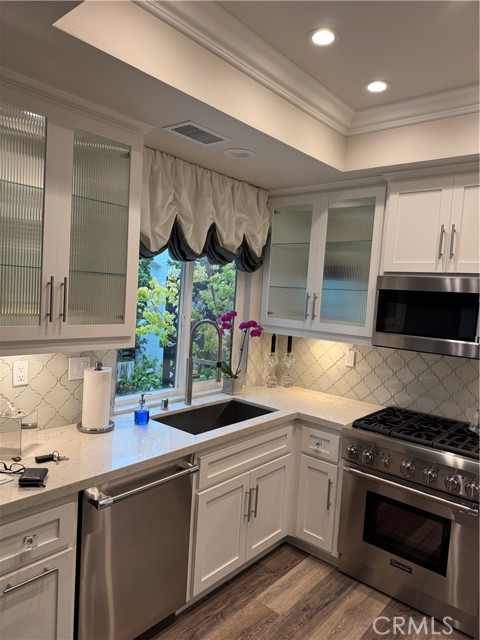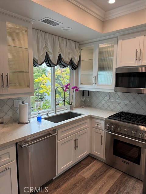 BEAUTIFULLY UPGRADED / REMODELED SINGLE LEVEL CONDO. 2 BEDROOM / 2 BATH. THIS CONDO IS LOCATED IN THE HIGHLY DESIRABLE MIRADOR / RANCHO NIGUEL NEIGHBORHOOD. RECENTLY RENOVATED KITCHEN WITH THERMADOR STAINLESS STEEL RANGE, MICROWAVE AND DISHWASHER. BUILT IN* SUB ZERO REFRIDGERATION. QUARTZ COUNTER TOPS. LARGE SINGLE STAINLESS STEEL SINK. UPGRADED CABINETS AND ALL NEW LIGHTING. NEW PREMIMUM VINYL FLOORING MATCHING THROUGHOUT. REMODELED PREMIUM FININSHES IN BOTH BATHROOMS WITH TILED WALLS THROUGHOUT. UPGRADED PREMIUM RAIN SHOWER IN MASTER BATH. NEW VANITIES AND SINKS WITH MATCHING QUARTZ COUNTERTOPS. NEW PAINT, NEW MIRRORED CLOSET DOORS THROUGHOUT. UPGRADED PREMIUM CROWN MOULDING THROUGHOUT. UPGRADED PREMIUM MULTI STAGE AIR CONDITIONING AND AIR FILTRATION AND HEATING SYSTEM. UPGRADED PREMIUM LIGHTING THROUGHOUT. STACKED LG WASHER AND DRYER INCLUDED. WELL MANICURED COMMUNITY WITH POOL AND JACUZZI. VERY CLOSE TO THE LAKE AND LAGUNA NIGUEL REGIONAL PARK. MODERN UPGRADES, PREMIUM FINISHES AND REMODELED THROUGHOUT. THIS HOME IS A MUST SEE.Interested in this Listing?