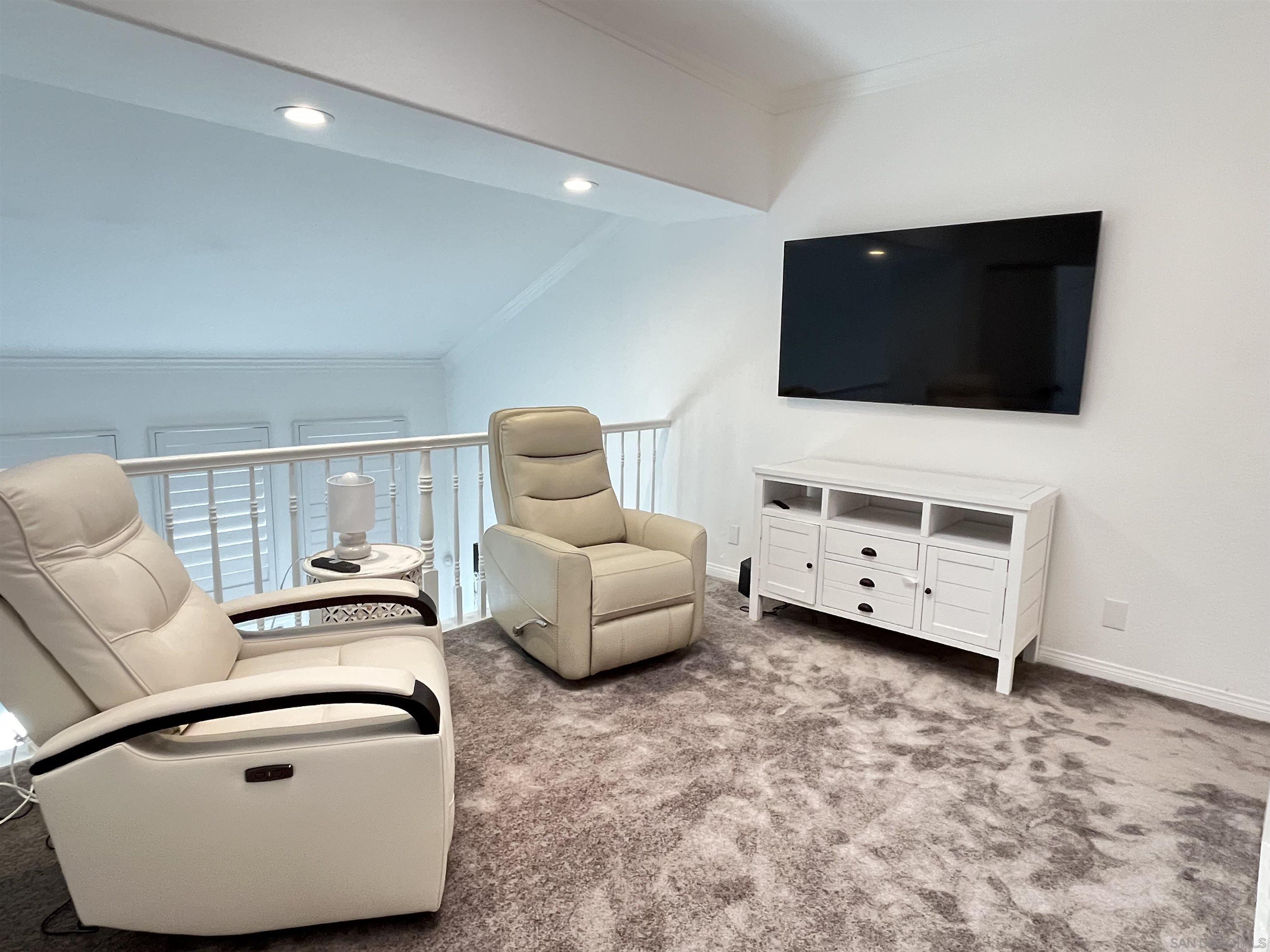 Discover this beautifully upgraded, turn-key home boasting stunning panoramic vistas. Views from living room, kitchen, breakfast/reading nook, and primary bedroom. Vaulted ceilings enhance the open living area, perfectly framing the view. Curl up with a book in the breakfast nook's built-in seating, warmed by a unique 3-sided glass fireplace shared with the living room. Upstairs, a sun-drenched family room loft overlooks the main level. The primary bedroom offers a walk-out deck showcasing the city lights and rolling hills. Both bedrooms have nicely finished en-suite bathrooms. Enjoy seamless indoor-outdoor living on the patio yard, enclosed in glass to maximize the breathtaking views and occasional visits from local mule deer, courtesy of the adjacent Aliso Creek trails.Interested in this Listing?