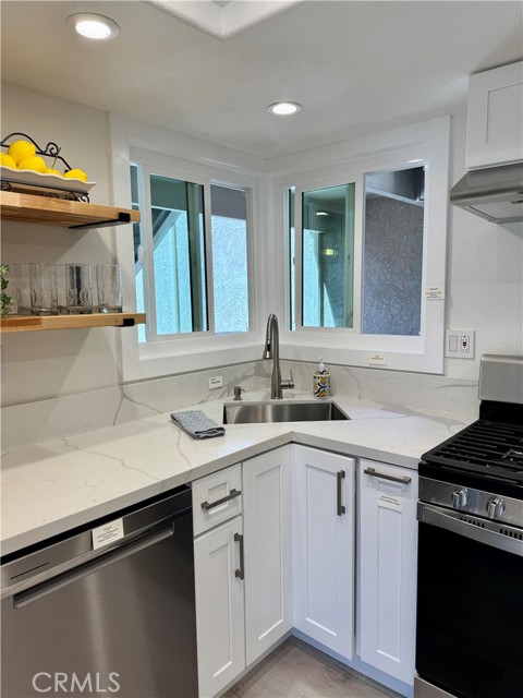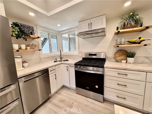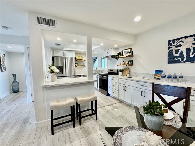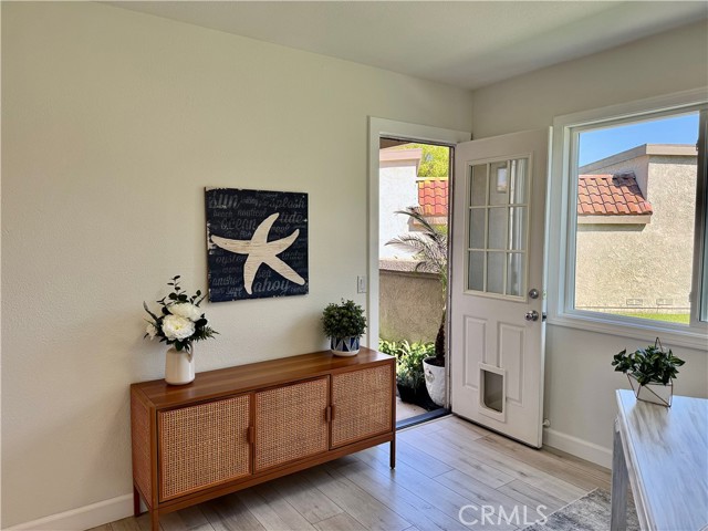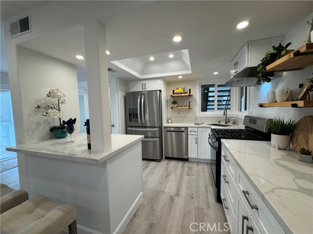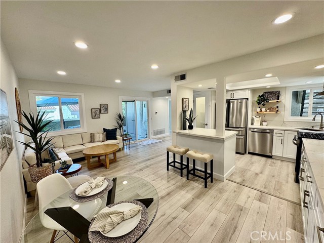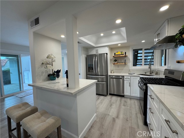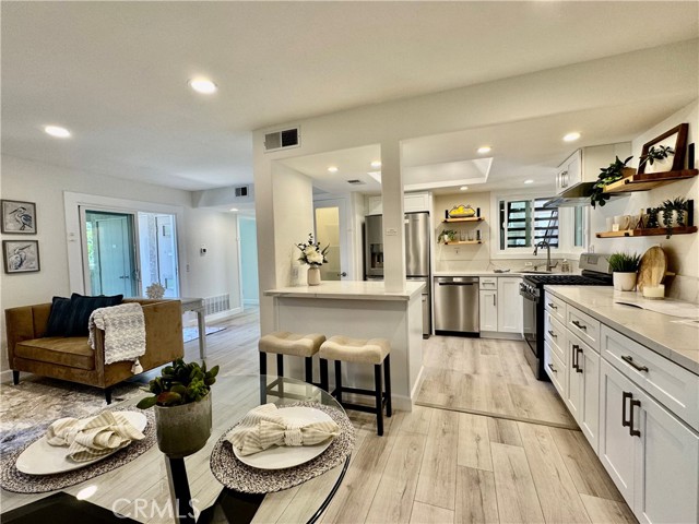 RARE OPPORTUNITY IN LAGUNA NIGUEL - COMPLETELY REMODELED GROUND-LEVEL UNIT. This beautifully remodeled ground single level home offers an amazing exterior living space, ideally located near the Resort Style (two) pools, (two) spas, clubhouse, and parking. This open and airy floor plan is perfect for modern living, featuring a ground floor primary bedroom, with a completely updated kitchen featuring NEW stainless steel, energy-efficient Whirlpool appliances, a whisper quiet dishwasher, and vent hood. The new shaker style, dovetail, cabinets with soft close hinges are paired with sleek quartz countertops, a large island with breakfast bar, and a convenient built-in pantry. Throughout the home you will find custom touches, like glass panel doors, new energy efficient windows, recessed lighting, and luxury vinyl flooring. The bathrooms have been fully remodeled with tile flooring and glass shower door. The Primary bath features dual Kohler Sinks with modern Kohler faucets, and new lighting. The primary bedroom boasts a mirrored closet, built-in shelving, and a beautiful barn door. Enjoy added comfort with, energy efficient HVAC system (air conditioning) and furnace. The entryway has been enhanced with a Ring Doorbell, and custom-built storage throughout, including a handy entry drop zone, provides both style and functionality. Step outside to your luxurious patio, perfect for outdoor living and relaxation, view to hills. Detached garage located close to unit. Laundry room includes new LVP, new shelving, washer and dryer included, motion sensor lighting. This home is not a flip, to much attention to detail to list. The Villa Mira community has recently benefited from significant enhancements, such as PEX piping, fresh exterior paint, and new roofing. Villa Mira's prime location offers unparalleled convenience to toll roads and freeway - Major Resorts and Spas nearby. Just minutes to Dana Point Harbor, Doheny Beach, and San Juan Capistrano.Interested in this Listing?