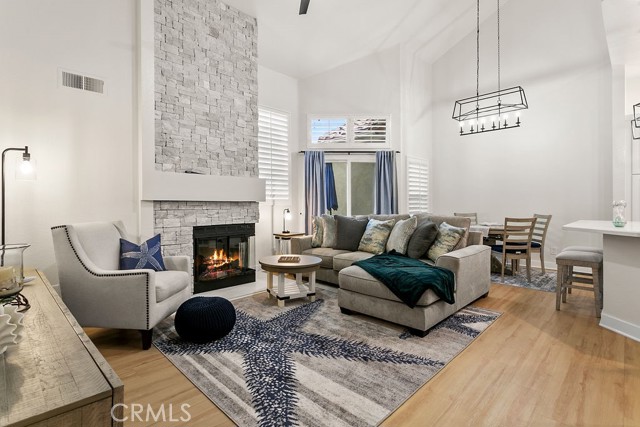 Available Sept 3rd! Welcome to your Fully Furnished retreat in the highly sought-after Palm Court neighborhood of Laguna Niguel! This beautifully upgraded condo offers a seamless blend of modern design and comfort, perfect for those seeking a turnkey living experience. With 2 bedrooms, including a spacious primary bedroom with a king-sized bed, and an open loft that functions as a second bedroom with a queen-sized bed, this home offers versatile living spaces to suit various needs. As you enter, you ll be greeted by soaring 17' ceilings and abundant natural light, creating an open and airy ambiance. The stylishly furnished interior offers everything you need, from cozy living spaces to a fully equipped kitchen, allowing you to settle in effortlessly. Enjoy your morning coffee or evening relaxation on one of two private balconies, both offering tranquil views and fresh air. Inside, the contemporary bathrooms provide spa-like luxury, featuring high-end fixtures and finishes. The spacious living room is centered around a wood-burning or gas fireplace, ideal for cozy evenings at home. The open-concept design flows easily between the living, dining, and kitchen areas, making it a great space for hosting friends or enjoying quiet nights in. This furnished rental also includes an attached 1 car garage with ample storage, providing convenience and security. Residents will have access to community amenities like tennis courts, sparkling pools and spas, and nearby hiking trails, perfect for staying active or unwinding in nature. Located just minutes from pristine beaches and the Dana Point Harbor, you ll be perfectly positioned to embrace the coastal lifestyle. Rent rates: $4500 (6+ months), $4800 (1-5 months), Summer months (June-Aug) always $5000.