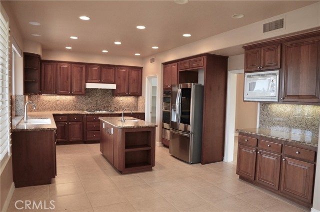 Perched on a premium view lot, this executive-class residence boasts ever-changing valley, hill, and city light views that culminate in extraordinary sunsets. The backyard, designed for entertaining, features a built-in BBQ, seating area, and a shaded patio. The inside spans approximately 3,812 square feet. The main level impresses with a grand formal entry, soaring two-story ceilings, and an abundance of natural light. A gourmet kitchen complete with charming cabinetry, a center island, granite countertops, walk-in pantry, and newly upgraded stainless-steel refrigerator, oven and microwave that functions as a convection oven. A cozy breakfast nook opens to the inviting family room with a fireplace. The home s two primary suites provide luxury and privacy. The main-level suite features a private entrance and retreat area, while the second-level suite boasts a private view balcony, jetted tub, oversized shower, double vanity sinks, and a large walk-in closet with pull-down attic access for extra storage. Two ensuite guest bedrooms and an oversized den/entertainment room with built-in cabinets and a fireplace complete the second level. This home is packed with modern upgrades, including newly installed carpet on stairs and guest bedrooms, flooring on main living areas and primary suite on second level, and recess lighting in family room. Additional highlights include solar panels, new AC and heating systems, central vacuum, reverse osmosis filtration, a water softener, and a garage with built-in cabinets, overhead storage, and an instant hot water heater. The San Joaquin Hills community offers resort-style amenities, including two pools and hot tubs, a gated playground, picnic area, a basketball court, and 24-hour guard-gated security. Located just a short drive from world-class beaches.Interested in this Listing?