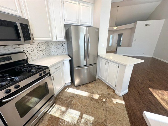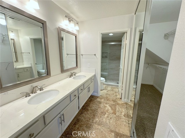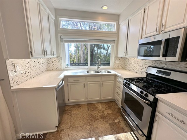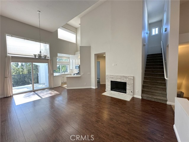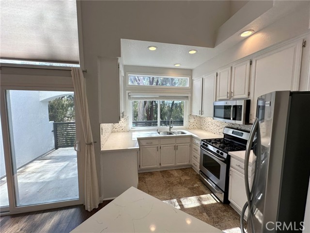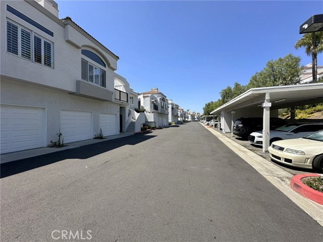 Beautifully Updated Upstairs Condo with a Dramatic Entry that opens to the Great Room boasting Vaulted Ceilings and Sunset & Skyline Views. Includes 1-Car Attached Direct-Access Garage AND 1 Assigned Carport Space. This home has 2 flights of interior stairs: Staircase from the Street-Level Garage on the 1st Floor leads up to the 2nd/Main Floor which features the Spacious Living Areas, Patio/Deck, and 2 Bedrooms. The second staircase ascends from the Main/Second Floor up to the Third Floor. The Third Floor is dedicated to the Second Primary Bedroom & Bath. This home features TWO (2) Primary Suites PLUS a 3RD Bedroom/Den/Office with a small Closet & Half-Bath. The Grand Primary Suite is on the Main/2nd floor, featuring Remodeled Bathroom with Dual Sinks, Spacious Designer Shower, Mirrored Walk-in Wardrobe Closet, & a Sliding Glass Door leading to fresh air and the patio/balcony space overlooking lush trees and the hills of the Laguna Niguel Regional Park and an alluring city light view. The 2ND Primary Bedroom is upstairs w/ 2 closets, one is quite spacious inside the bedroom and the other is just across from the adjoining 3/4 Bathroom. The 3RD Bedroom/Den/Office is on the Main/2nd Floor, next to the Formal Entry Space. The 3RD Bedroom/Den/Office features Double Entry Doors, a Petite Closet, and an adjoining Upgraded Half-Bathroom. The Main Living Space is an open concept Great Room with 2-Story Vaulted Ceilings in the Living/Dining Areas: Remodeled Kitchen w/Quartz Counters, Stainless Steel Appliances, Gas Range, Breakfast Bar, Dining Area, Living Rm w/Chic Stack Stone & Glass Rock Fireplace. An Exterior Storage Closet is off of the Large Balcony which is your Private Patio Space, featuring lovely Views of hills, landscape and skyline framed by mature trees and its Contemporary Mediterranean architecture. A Main Floor Laundry Niche includes a Bonus Full-Size Washer & Dryer Conveniently located off of the Grand Primary Bedroom & Great Room. There is Central AC & Heat, plus Ceiling Fans. This condo includes the amenities of "Mirador at Rancho Niguel" pool & spa and water and trash utilities are also included in rent. This ideal location is walking distance to shops, grocery, great restaurants, hiking & biking trails. Short bike ride or drive to LN Regional Park & Lake, fishing, and only 15 minutes to BEACHES, Dana Point Harbor, and much much more! Conveniently just a few minutes to FWY access too!