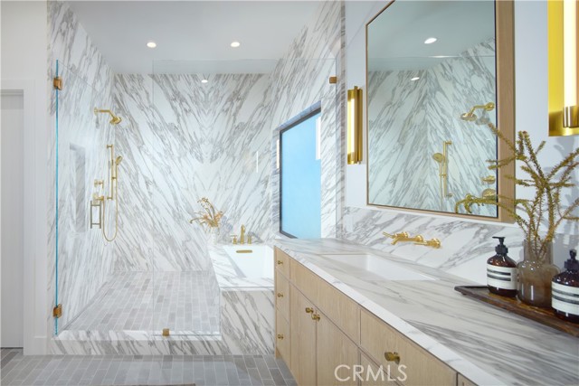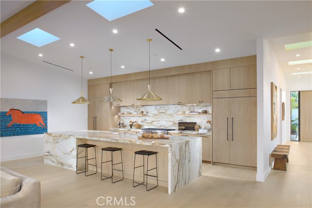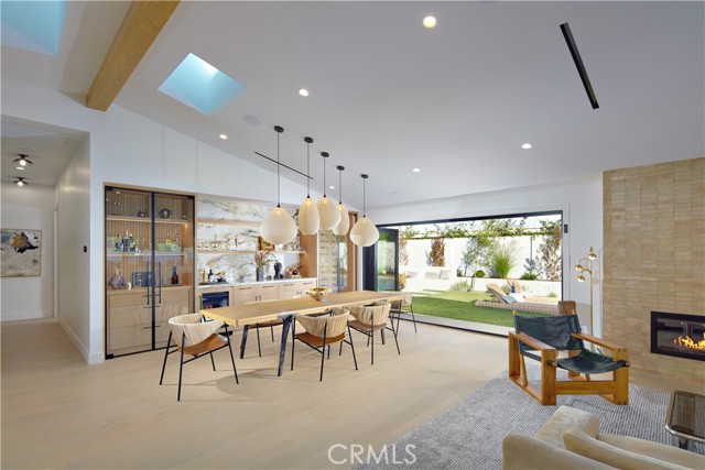 Airy, open, and undeniably inviting, this single-level contemporary home enjoys a coveted location in Newport Beach s Bay Crest South/Dover Shores community. Displaying the talents of LL Design and Well Done Builders, this showpiece residence accommodates four bedrooms and five-and-one-half bathrooms on over 10,000 square feet of grounds. Enter through a striking white oak pivot door into a grand foyer, where natural light cascades through skylights, illuminating custom hardwood floors. High ceilings and expansive windows further bathe the interiors in sunlight, highlighting magazine-worthy details throughout. The open dining area, complete with a wine cellar and cozy, fireplace-centered living room, is served by a gourmet kitchen showcasing bespoke cabinetry, an impressive 14 foot island, and top-of-the-line Sub-Zero appliances. Porcelain countertops and a matching backsplash add a touch of elegance to this culinary space. The kitchen seamlessly integrates a concealed door leading to a spacious butler's pantry, complete with a sink, Fisher & Paykel dishwasher, ample cabinetry, and direct garage access. A private office, distinguished by a wood-paneled accent wall and custom light fixtures, offers a comfortable work-from home environment. Serenity and luxury define the primary suite, where a spa-like bath retreat includes a deep soaking tub, oversized walk-in shower framed in floor-to-ceiling stone, and a custom skylit closet. Three additional bedrooms, each with a built-in closet, provide versatile spaces for guests, with two featuring en suite baths. Step into a sprawling backyard designed for relaxation and gatherings. Anchored by a cozy firepit, the outdoor space also includes a separate pool room with a fireplace and en-suite bath. A sparkling pool, relaxing spa, bocce ball court, lush landscaping, and an outdoor shower shape a private oasis, perfect for both entertaining and unwinding. North Star Beach is just around the corner, and the Newport Aquatics Center, award-winning schools, Fashion Island s shops and restaurants, and Newport Harbor are minutes away.Interested in this Listing?