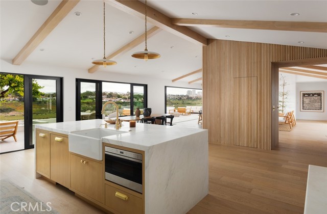 This architectural ranch-style gem in Dover Shores offers striking design, breathtaking Back Bay and city light views, and an abundance of outdoor space, including a private courtyard with a stunning pool and spa. Set on a 9,000 square foot lot, the 3,355 square foot home features 4 bedrooms and 4 bathrooms, welcoming you with a custom white oak entry, soaring beamed ceilings, and a seamless indoor-outdoor flow. The living and dining rooms showcase a white brick fireplace, serene vistas, and a custom built-in bar. Anchoring the home is a showpiece chef s kitchen with Calacatta marble countertops, floating white oak shelving, designer brass hardware, and top-tier appliances. The expansive deck is an entertainer s dream with a fire pit, dining area, and lounge space overlooking panoramic views. Major structural upgrades including a massive grade beam and multiple caissons make this one of the most soundly built homes in the area. The luxurious primary suite opens to the deck through folding glass doors and offers a spa-like bath with a freestanding tub, glass-enclosed shower, and polished Calacatta marble finishes. Three additional ensuite bedrooms and a versatile family room opening to the pool complete the layout. High-end details include white European oak floors, custom tile work, a three-car garage, and a well-appointed laundry room with double-stacked appliances. Residents of Dover Shores enjoy private beach access, scenic trails, and proximity to the Newport Aquatic Center. This is a rare opportunity to experience sophisticated coastal living with flawless craftsmanship and design.Interested in this Listing?