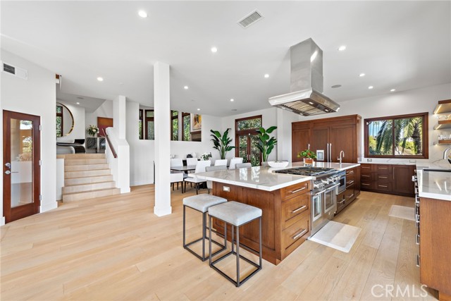 Nestled on a coveted corner lot, this exceptional estate sits beside Cliff Drive Park on one side and just steps away from a lush greenbelt on the other, creating a unique blend of privacy, beauty, and convenience. With sweeping views of the ocean, harbor, and Catalina Island, this property is a true masterpiece of coastal living. Spanning over 5,000 square feet, this five-bedroom (optional sixth) home, with five-and-a-half baths, offers a seamless fusion of luxury, design, and natural surroundings. The entry is framed by a serene walkway with water features leading to double doors. Inside, the open foyer with soaring ceilings, a central fireplace, and expansive Marvin windows create a bright, welcoming atmosphere. Wood and stone flooring and custom millwork add a refined touch, while sunken common areas enhance the sense of space. On the main level, you'll find two spacious en suite bedrooms, a formal living room, a wine room, and an open-concept dining area that flows into a gourmet kitchen and family room. The kitchen features Thermador appliances, a 13-foot "Bistro"-style island, quartz countertops, and custom cabinetry. Glass doors open to a covered terrace, offering sweeping harbor views. The private wing is home to the primary suite, which includes a fireplace, private balcony, a large walk-in closet, and a spa-like bath. On the same level, a media room, library, office, two additional en suite bedrooms with built-in study areas, and an upstairs family room complete the living spaces. Outside, the backyard is an entertainer s dream, featuring a saltwater pool, built-in BBQ, and plenty of space for al fresco dining, all framed by breathtaking coastal views. Other highlights include a Vantage lighting system, a laundry room, and a sweeping driveway leading to a three-car garage, all set amidst beautifully manicured landscaping. Located just minutes from shopping, dining, and the Balboa Peninsula, this home offers the perfect combination of privacy, luxury, and convenience.Interested in this Listing?
