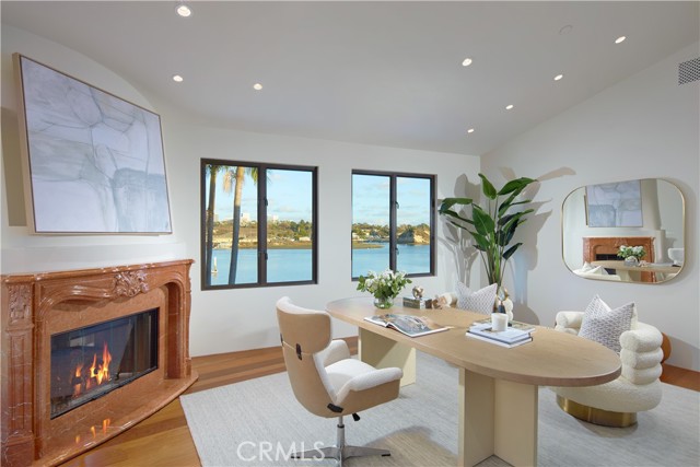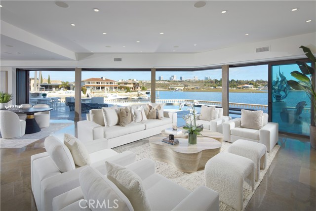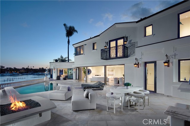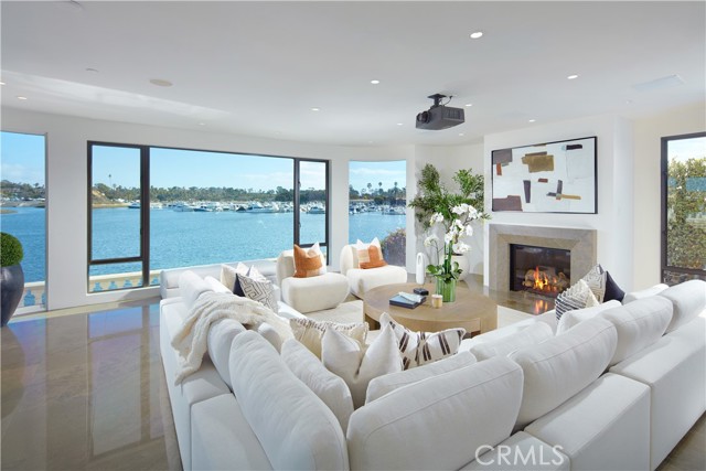 Showcasing approximately 148 feet of prime bay frontage from its exceptional end-of-cul-de-sac location in Newport Beach s prestigious Dover Shores, this extravagant custom estate elevates waterfront living. A private dock that can accommodate multiple vessels is one of the countless luxurious that are revealed at the European-style villa, which is set behind gates and hosts five en suite bedrooms and six-and-one-half baths. Approximately 6,601 square feet, the opulent residence impresses upon arrival with an open-concept main level that frames views through extensive walls of telescoping glass doors, bringing bay, marina and city-light views into living areas of genuine distinction. The living, dining, and family rooms open directly to a massive waterfront terrace with a resort-caliber pool and spa, open-air fireplace, and an outdoor kitchen with grill and bar. Bay views continue in the kitchen, which hosts an island with waterfall edges, a pass-thru to the terrace, solid stone sink, walk-in pantry, Miele coffee station, wine fridge, and a gorgeous Lacanche range with pot filler. Three bedrooms and an office are located on this level, which also features a two-vehicle garage with two lifts accommodating up to four vehicles. An elegant circular staircase leads to the second level, where a rotunda opens to a romantic Juliet balcony overlooking the entry courtyard. A plush theater with enormous screen and wet bar, a fireplace-warmed office, and an exercise room join a secondary suite upstairs. The primary suite reveals an entrance with two hand-carved doors and a cross-loin ceiling, and a vaulted ceiling soars over the bedroom. Enjoy a fireplace, deck with panoramic bay and city views, two boutique-inspired walk-in closets, a solid stone freestanding tub, oversized multi-head steam shower, sit-down vanity and two sinks overlooking the bay. Additional highlights include lighting and alarm systems, custom shades, and built-in audio. Your desirable address in Dover Shores places you merely moments from community parks, Back Bay trails and the Newport Aquatic Center. Westcliff Plaza, Fashion Island, and miles of beaches are minutes from home, and a variety of award-winning public and private schools serve all grade levels. Rarely available, this extraordinary estate offers the unparalleled waterfront lifestyle you ve been seeking.Interested in this Listing?