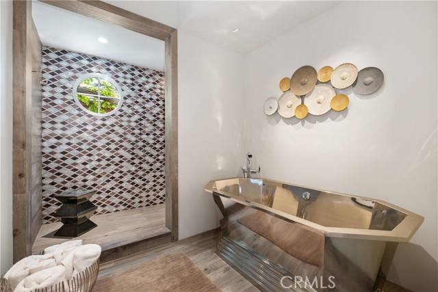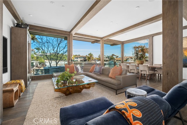 Tranquility and Peace awaits you!!!! Step through the unique 200-year-old entry gates leading to the front patio with spacious spa and seating area surrounded by lush greenery, flowers and citrus trees. The custom appointed front doors with beveled glass are an inspiration leading into this home of contemporary sophistication, elegance and serenity with open views of the back bay, deck and private dock. Your first steps inside, bring you to the foyer overlooking the large living room, dining room with exceptional sliding glass door and fireplace. The kitchen with custom Italian individually set tiles, wood cabinets and Italian Ilve Majestic oven will conjure up your true culinary senses. Also included in this amazing space is a kitchen counter bar with a spectacular ceiling mounted lighting fixture, prep sink and 100 bottle wine refrigerator. As you walk thru the kitchen there is Butler's Pantry with separate sink, dishwasher, icemaker, extensive counter and beautiful window overlooking the front patio and entrance. Next to the kitchen is a large laundry room that includes a washer/dryer and sink with counter. Adjoining the foyer is a spacious office with the same sliding glass door as in Living Room and a guest bathroom with custom vanity and stainless sink, a grand first floor ensuite bedroom includes a generous shower and separate custom stainless steel tub, a handcrafted vanity with crystal sink; leading to the front patio and spa allowing your guests to enjoy this private area.. The floating staircase with glass enclosure and handcrafted handrail is a piece of art, leading to three large ensuite bedrooms on the second level. The primary bedroom is completely separate from the rest of this home. This enormous space includes extensive closets and mirrors. Next to the closet is the bedroom area with views of back bay, mountains, Fashion Island and city lights. Off of the Primary Bedroom is an outside deck with open views and its own wood burning fireplace and specially made sofa swing. At the top of the stairs is another ensuite bedroom with privacy. Around the window lined hallway is another expansive bedroom with service bar capable of housing several guests. There are electric window shades throughout the home as well as Smart Home cameras, locks, lighting, etc On the exterior of this bay side property, is a secluded deck with fireplace and glass rails leading to the privately owned dock capable of housing a 55' yacht.Interested in this Listing?