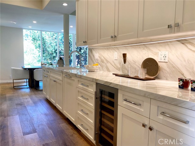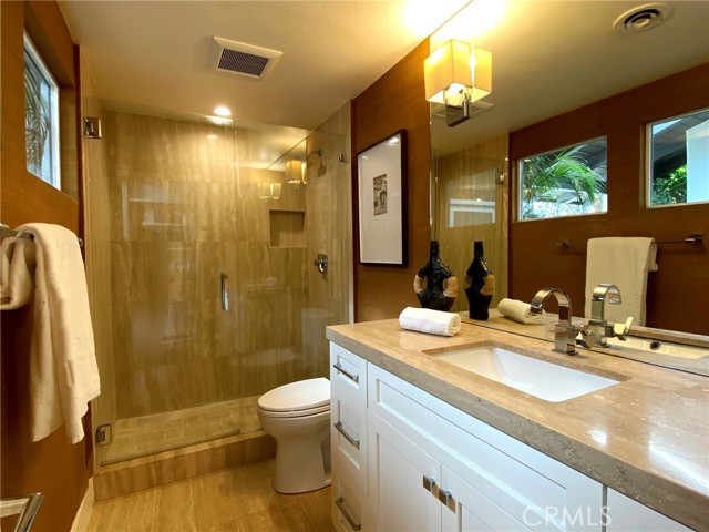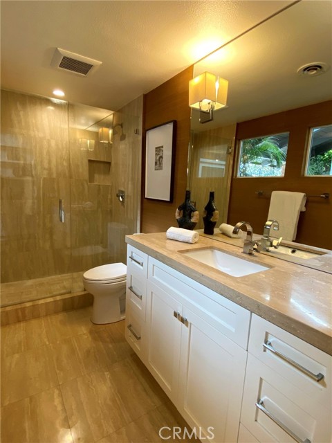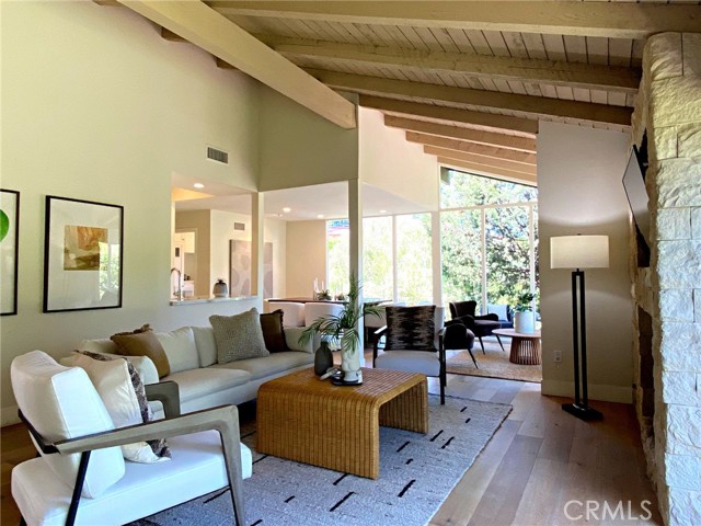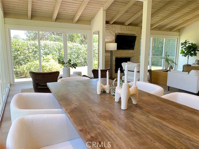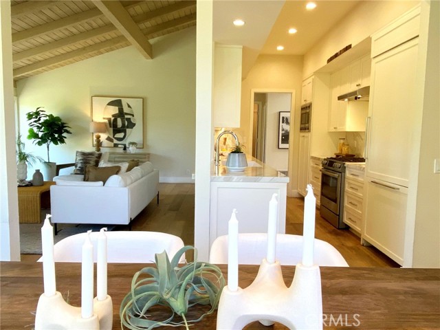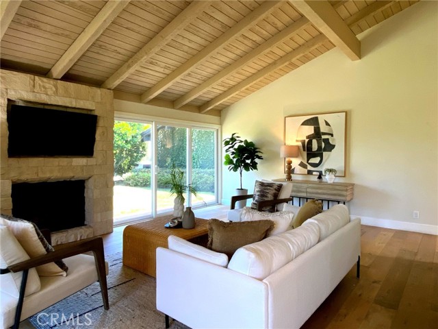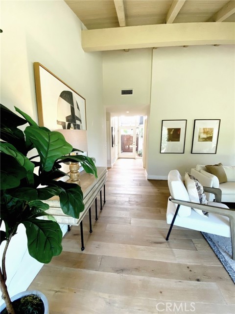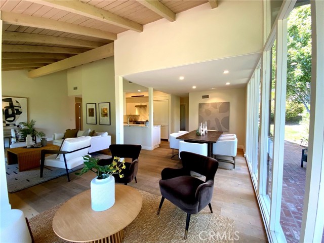 The neighborhood known for its expansive greenbelts and sense of community, The Bluffs in Newport Beach, offers you this highly desired single level, end unit home. Upgraded just a few years ago, this home offers walls of glass that provides that sought after indoor outdoor living. Updating included Provenza Old World oak wood flooring, quartz countertops, kitchen, and bath cabinetry, re-faced living room fireplace with built-in flat screen TV, Carrera marble in the baths and updated electrical and plumbing. The HVAC system was also updated. While your back yard has HOA access for landscaping, the feeling is that you are in your own private yard! Enjoy the privacy from the sliding glass doors in the dining area, living room and primary bedroom. The primary is highlighted by tall open beam wood ceilings and an expanded closet. Your location is close to Fashion Island, Balboa Island, Mariner s Mile, award winning schools and places of worship. The community of The Bluffs has its own neighborhood shopping center, community pools and is adjacent to the wonderful Upper Back Bay.Interested in this Listing?